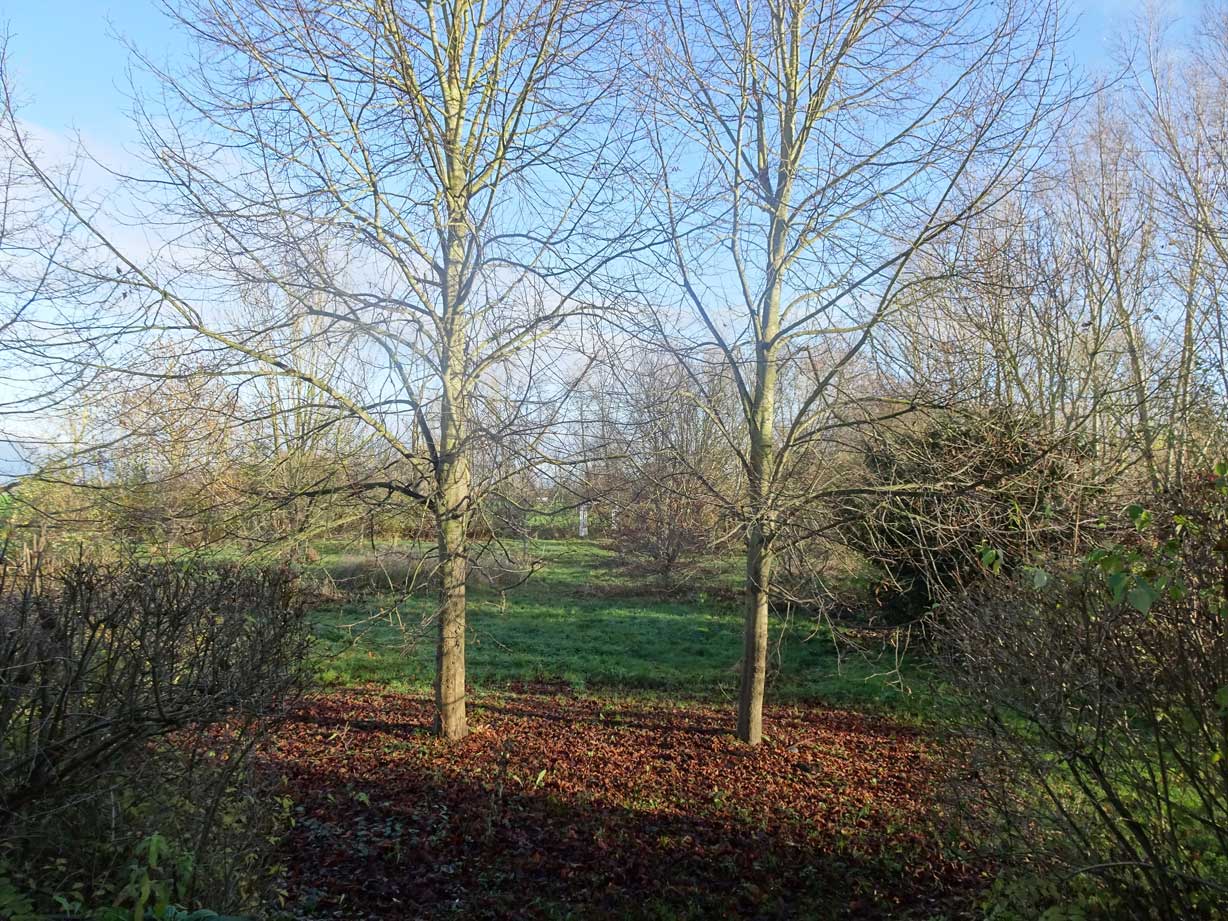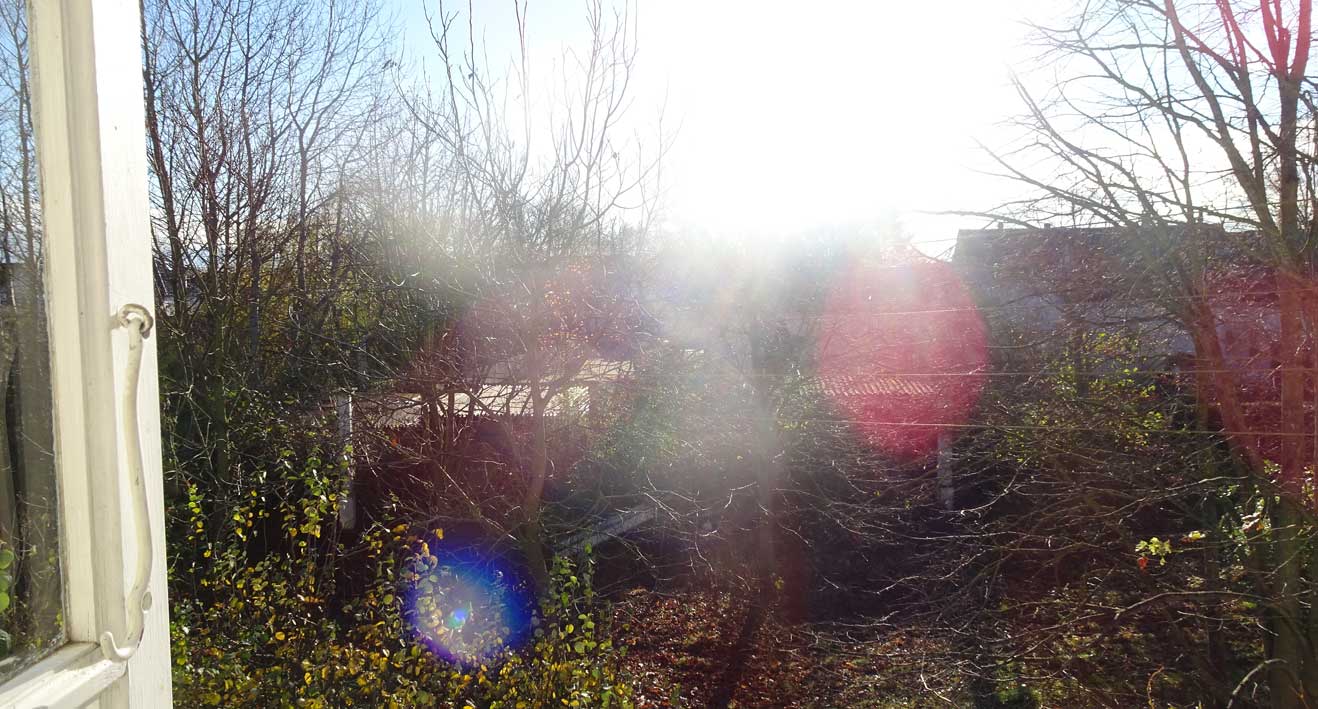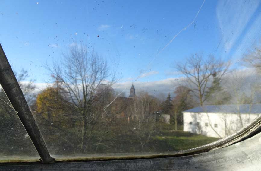 aber weithin der Blick nun im Herbst durch die Bäume und seis auch nur auf Zeit. In Richtung Felder, die alten.