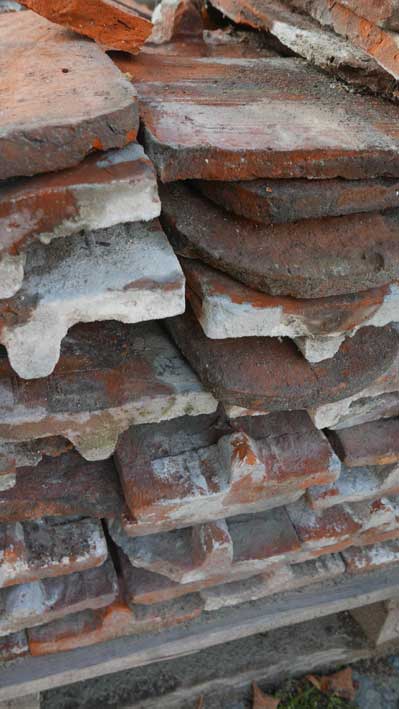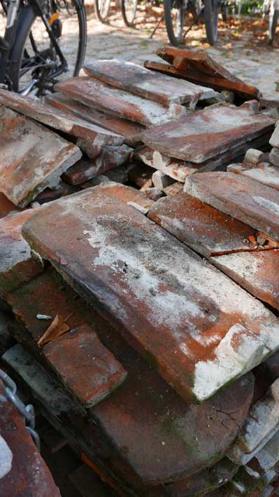 viel wurde restauriert. Diese Biberschwänze kamen raus. Zu schwer, M an kann sie erwerben. 1 Euro das Stück.