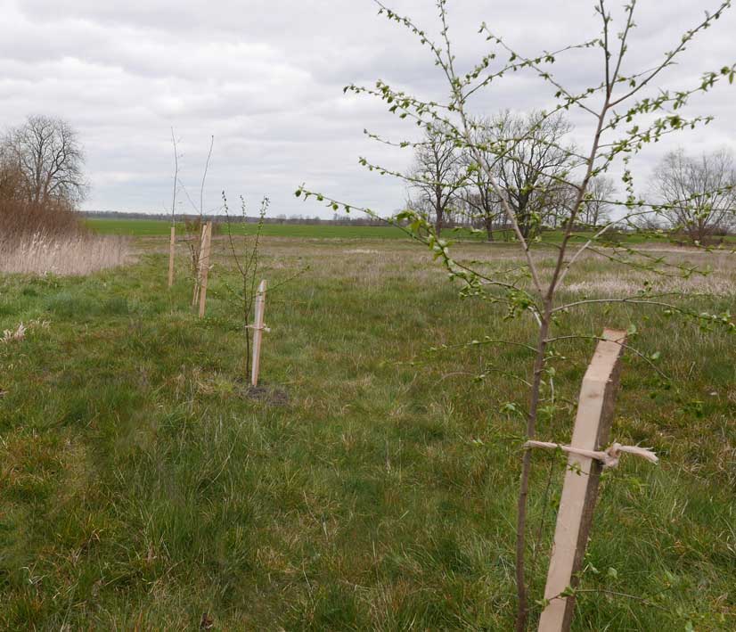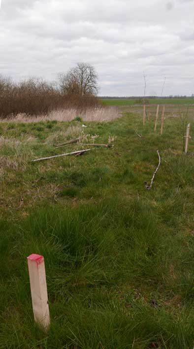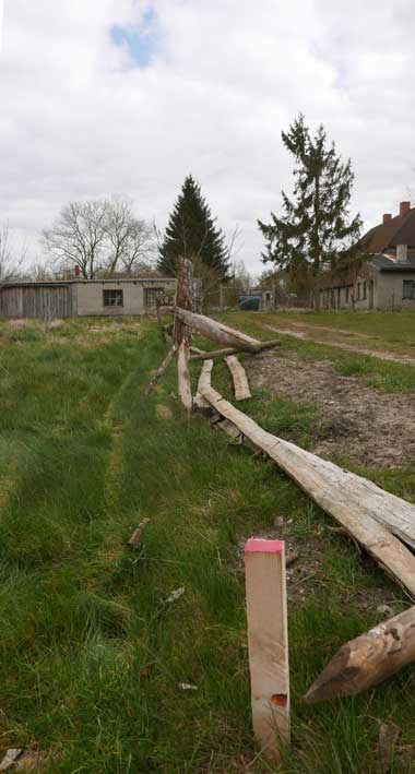 Die markierten Grenzpflöcke mahnen wo Beschädigung strafbar wird.