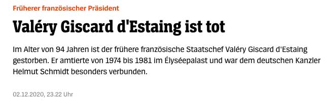 Former French President Giscard d'Estaing dies at 94 (Reuters)