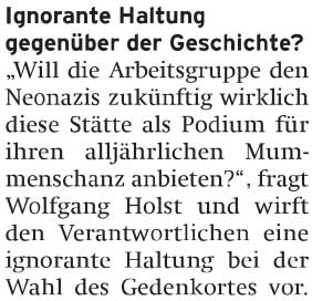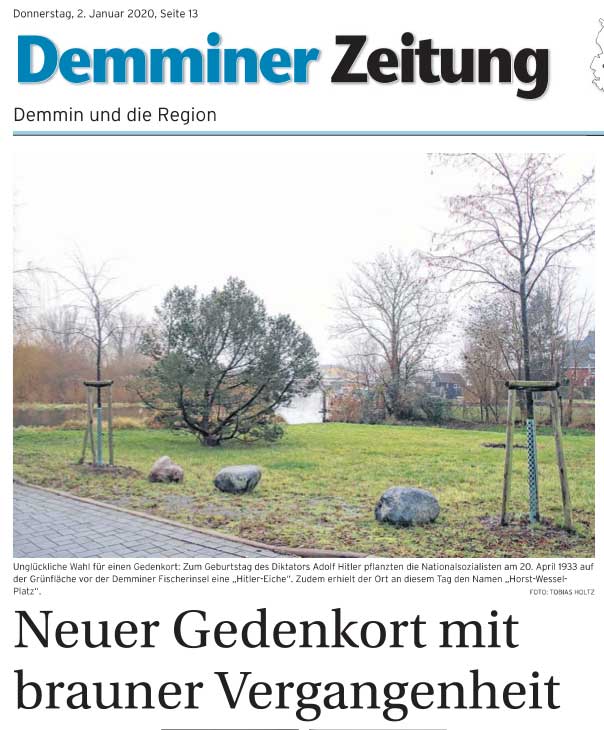 Nun fanden sie heraus, dass dort am eben endlich gefunden Platz zum Gedenken schon mal 1933 ein Horst Wessel Gedenkort mit Baum entstand.