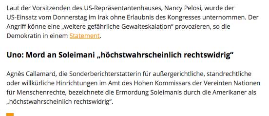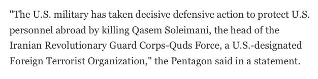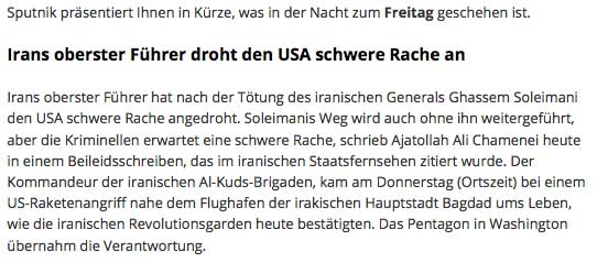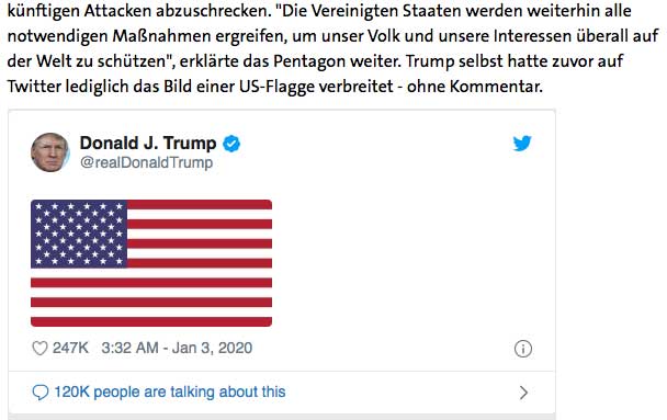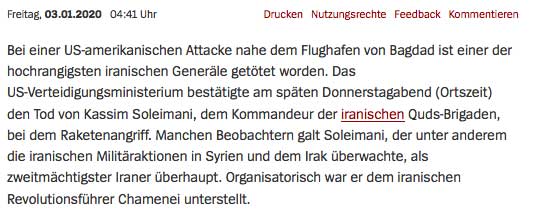 Sie legen grossen wert darauf, dass es Trump selbst war, der die Tötung befahl. Um Israel aus dem Focus zu nehmen.