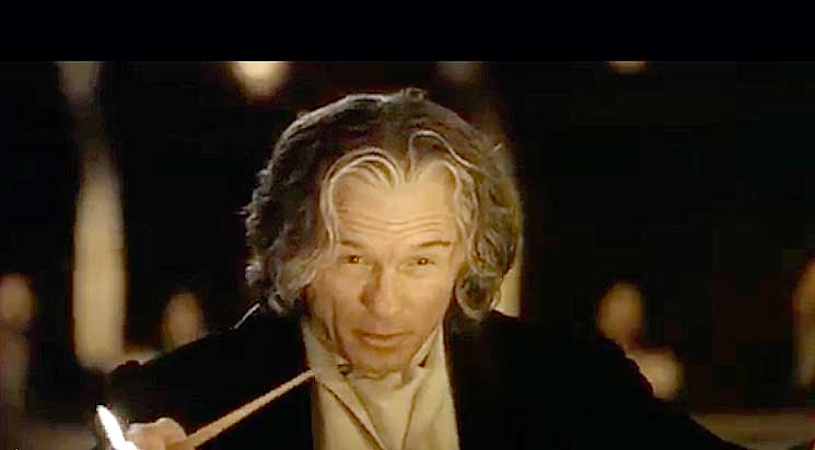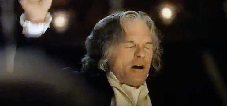 Da er nichts mehr hört und die Einsetzen nicht mehr richtig geben kann, übernimmt sie nach der Partitur, zu seinen Füssen ihm vorgelesen, alle Bewegung des Dirigierens vorzuspielen. Wirt um Wort, Ton um Ton.