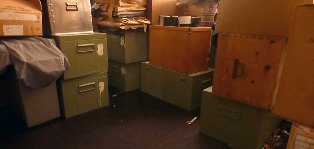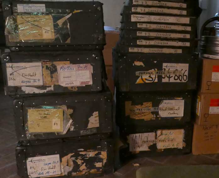 Neben den Filmmaterialien und Kisten voll Tagebüchern