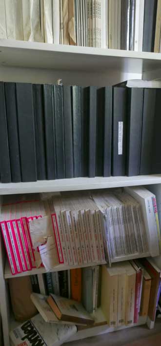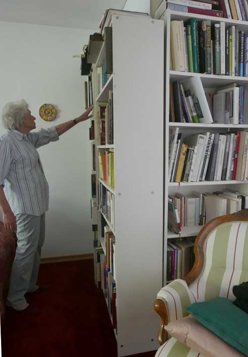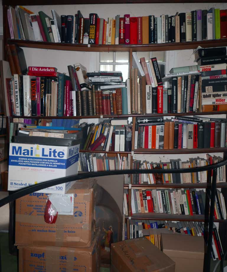 alles heraufgeschleppt in einer Nacht-und Nebelaktion als das Wasser einbrach. Bücher und Regal wie vor dem Feind. Der Münchner Spezielist für solche Sache mit seinen polnischen Helfern versprach Hilfe und hielt sein Wort.
