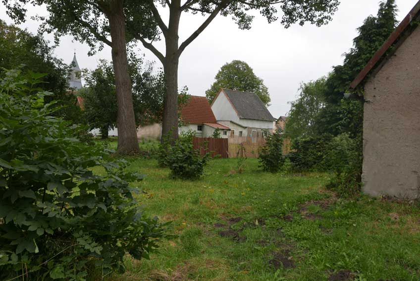 mit den zusammengeduckten Ställen der ehem. Leute-Häuser, die hier arbeiteten. Suhrbier(Stellmacher), Ehlert(Kühe), und Maibuhr(Hof), Scheel(Schweine) auch.