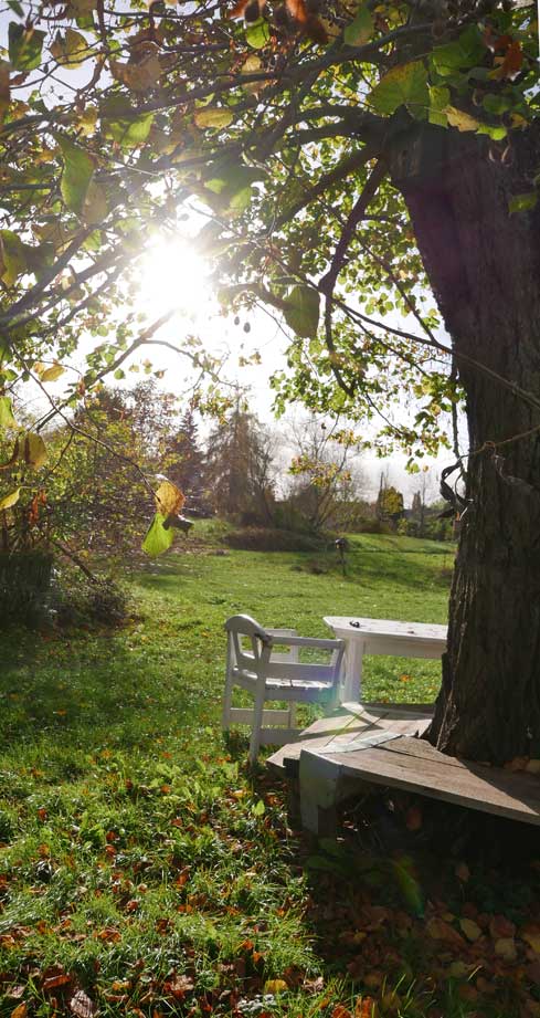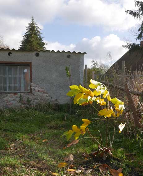 Dohlen vom Kirchturm im grossen schwarzen Scharm kommen nicht ran, zu klein die Öffnungen für die Schäbel und gehen in die benachbarte Kastanie sich bedienen. Weisse Tauben in tiefen Formationen fliegen durch den bunten Rest der Blätter kreuz und quer, wohl weil da was los ist. Sonst nie gesehen.
