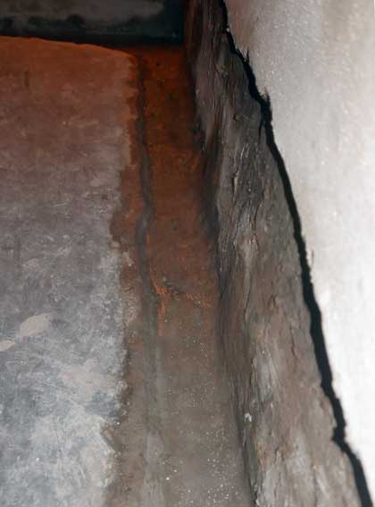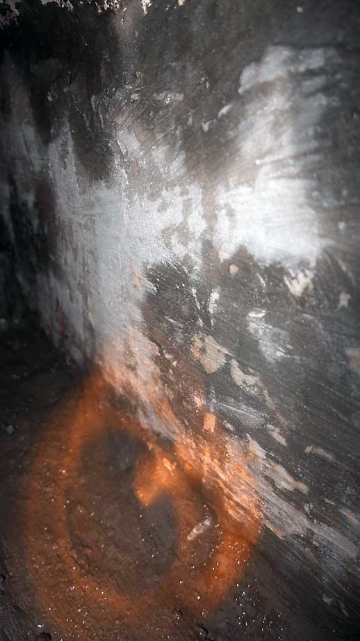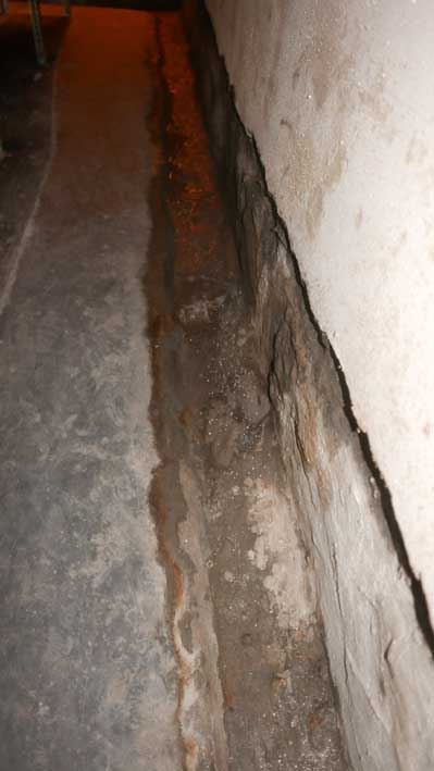 was anfangs unterWasser stand den Boden bedeckend und sich zurückzog in die Rinnen zwischen Wand und Boden, ist nun trocken, bis auf kleine Rinnsale im Griff. Aber unter der Bedrohung des allgemeinden Wasserzustands dieses Viertels der Stadt gefährdend für besondere Gegenstände wie diese. Keinen Pläne liegen vor was getan, wo die Rohre verlaufen, wo der Defkt oder nötige Ereneuerung bei ansteigenden Neuversieglung der Böder durch Neubauten grossen Masses, und was zu tun beabsichtigt. Technisch alles möglich. Seit leitzter Wahl eine 2. Bürgermeisterin der Grünen. Ohne Antwort.