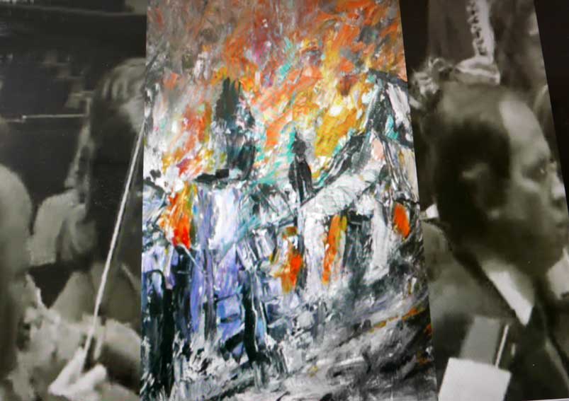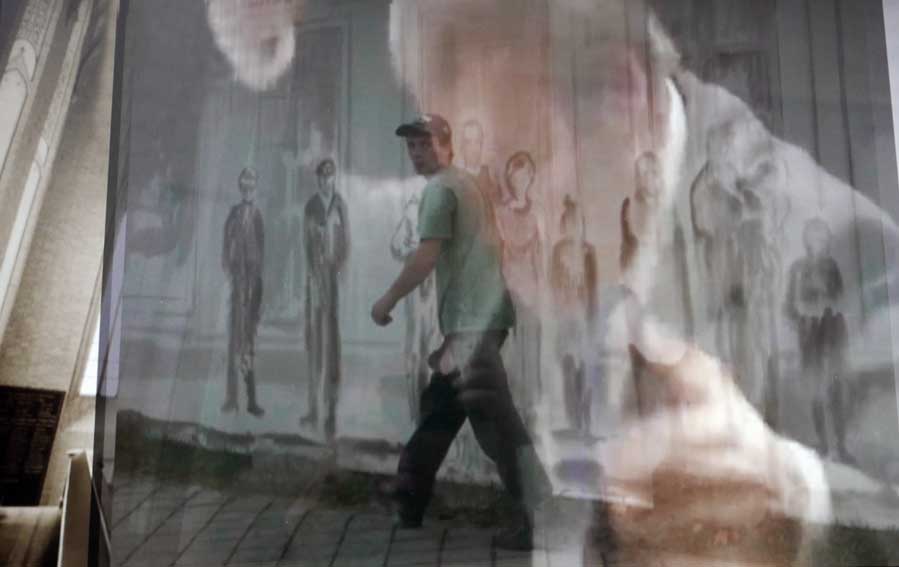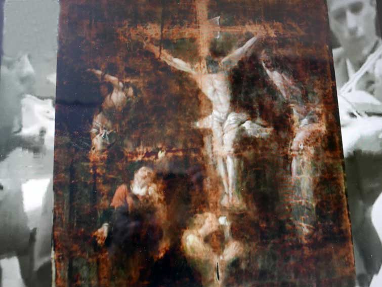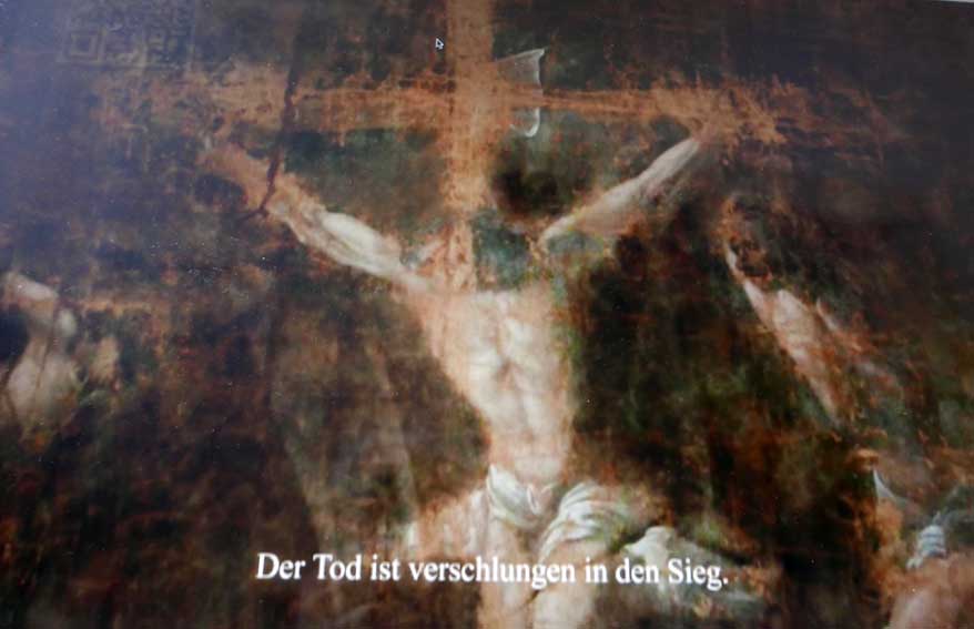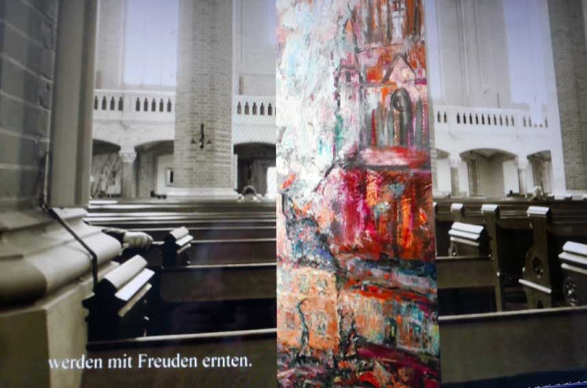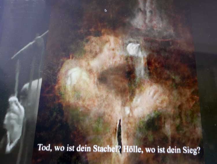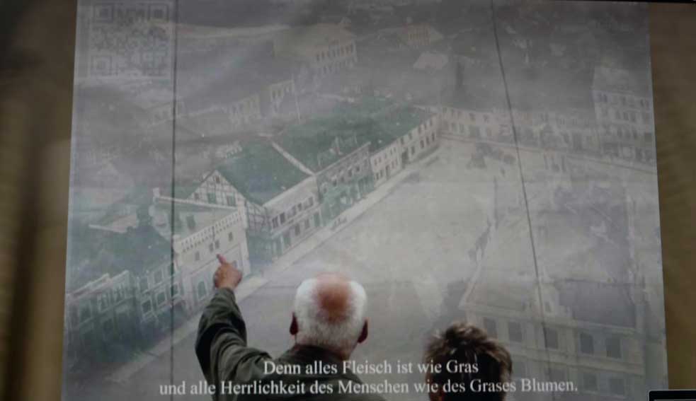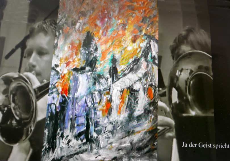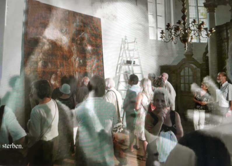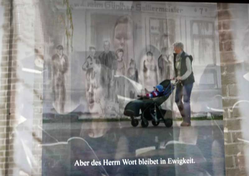 die Kirche von Demmin und einige Jahre Arbeit am Markt in Demmin mit Bildern wie das brennende Demmin von Karl Schlössers Kindheit, David Regehrs Vision der Toten am Markt und eine Kreuzigung durch das Kriegsende der Brände und Toten hier gegangen. Entstanden und präsentiert aus dem home-office und digital in jedes Haus, weltweit.