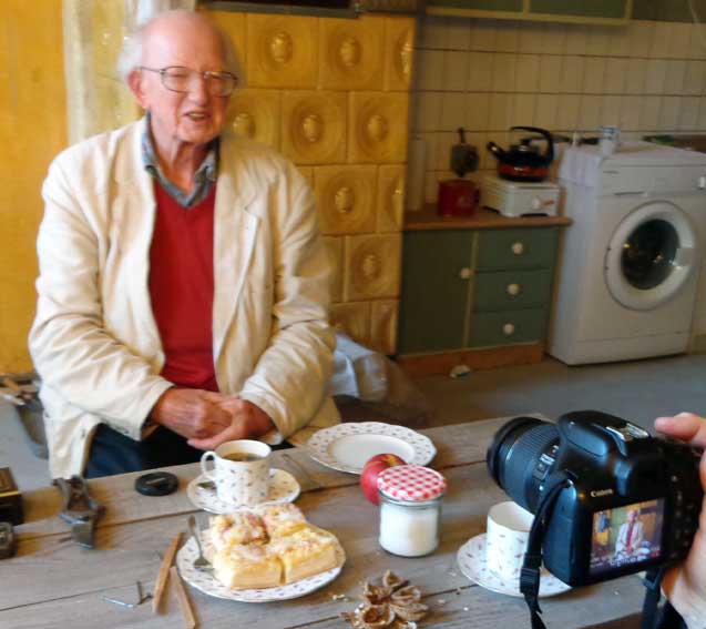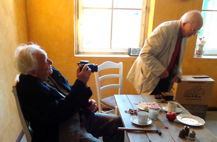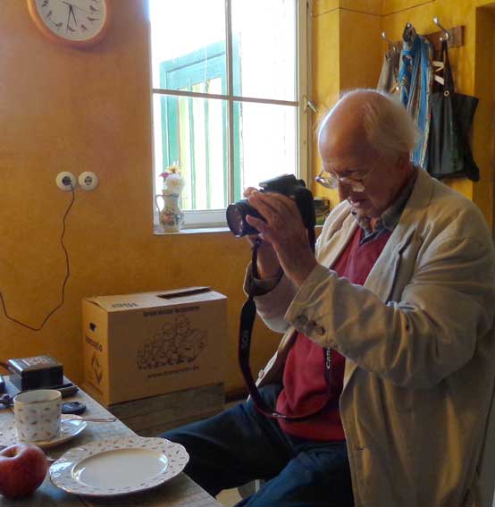 er, der soviel aufgenommen, von anderen, und keiner nimmt ihn auf. Mit seiner Kamera, nun wieder. Hier.