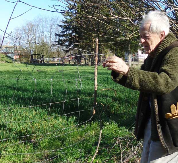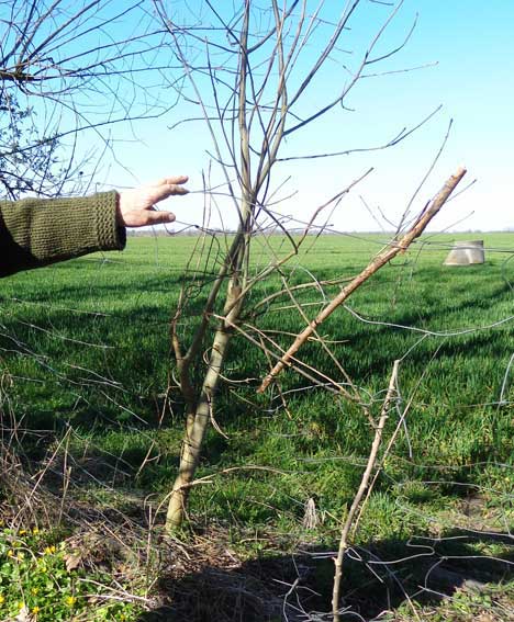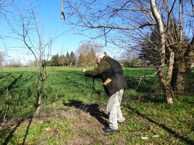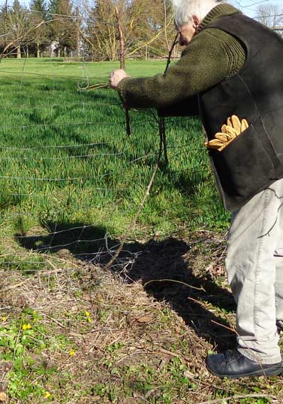 wo wir den Zaun öffnen mussten, um die nach dem Sturm gefällte Ulme auf dem Feld zu bergen.