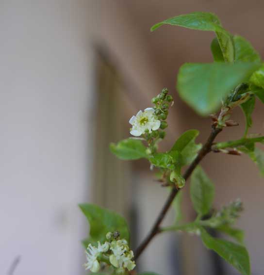 erste Blüten im Inneren, was demnächst in vollen Trauben draussen überall hier steht