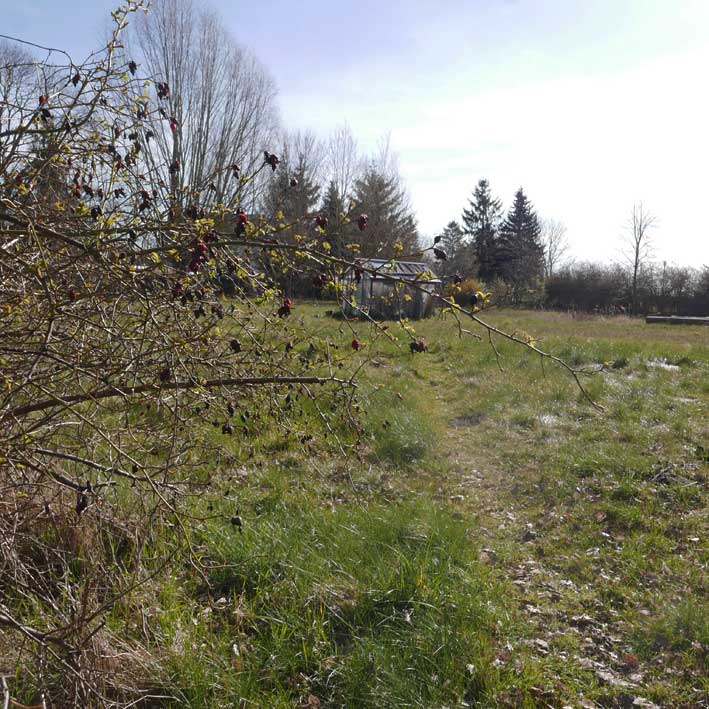 und wie Rehspuren auf den Wegen zu den Rosen zeigen, dass die nächtlichen Rehe wohl hier durchbechen,