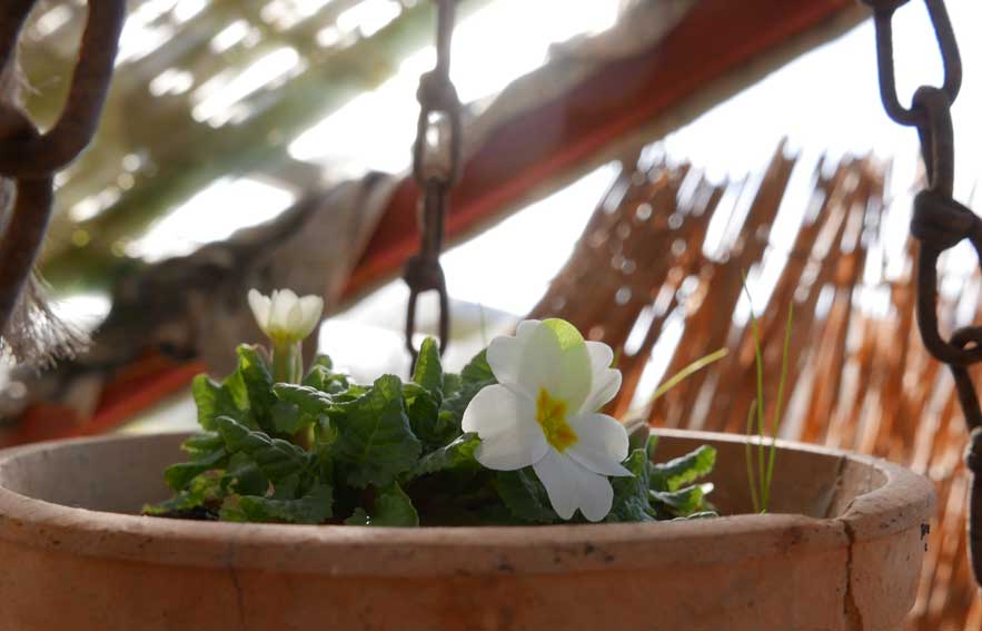 Endlich die Primel aus den letzten Jahren über die heissen Sommer gerettet und langsam kleiner geworden wieder wie sie sein soll. Nun blühend. Hier.