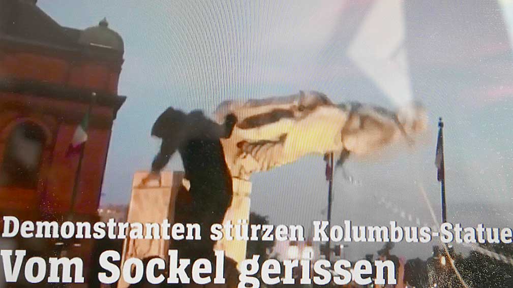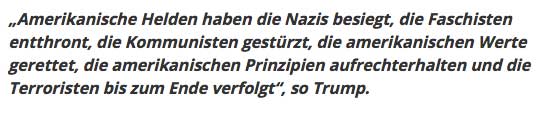 Und wovon spricht der amerikanische Präsident am Nationalfeiertag als die Staatsgründer vom Sockelgeholt wurden.