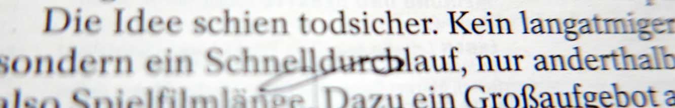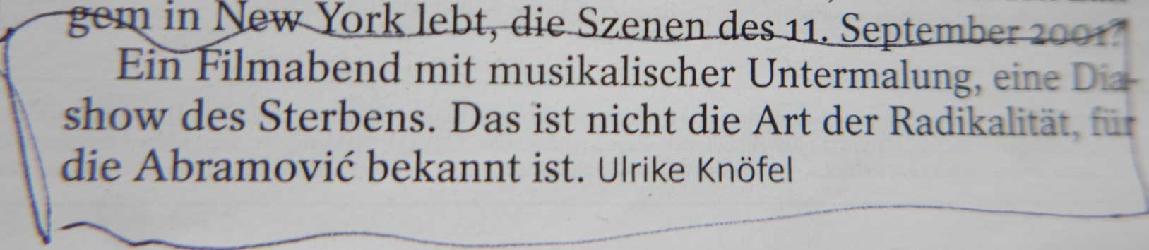 Aber es geht um unser Gewerbe, unsere Kunst. Letzte Dinge. Was hier verhandelt wird. Ein einsamer Mensch, eine Frau, auf der Bühne, was machen wir damit. Warum nicht als farce. Gelächter hilft.