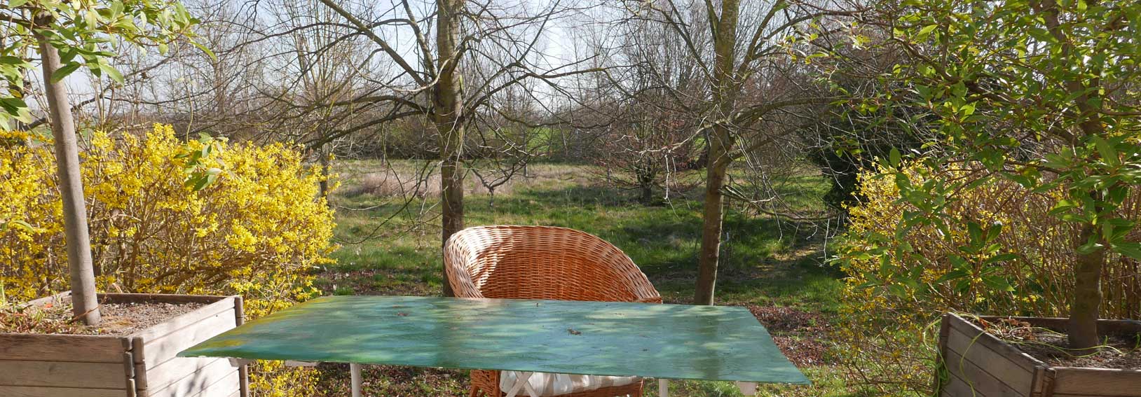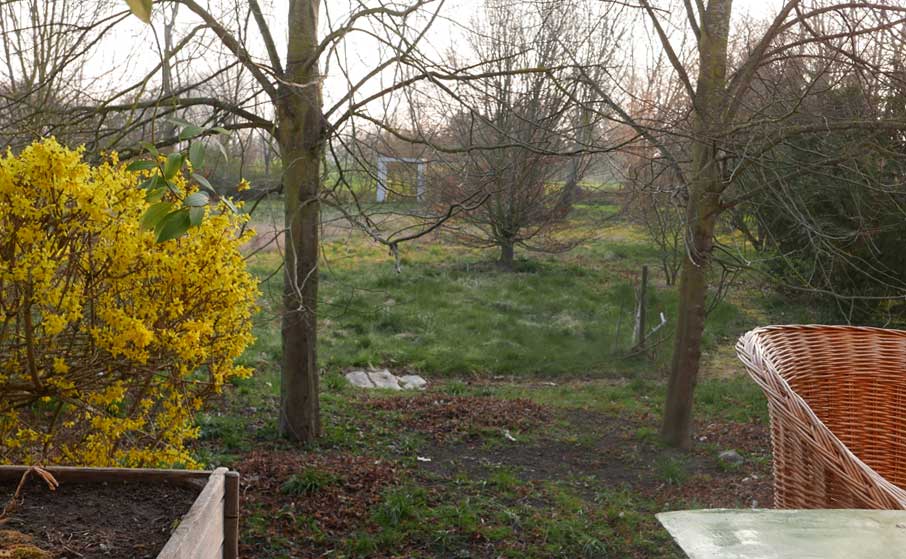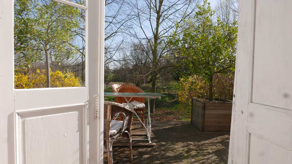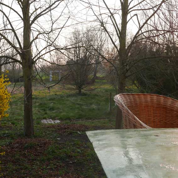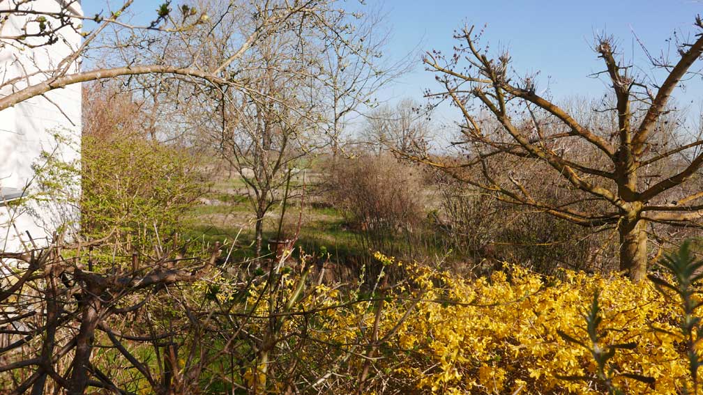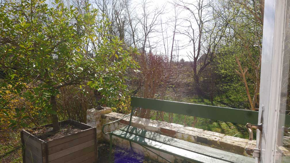 auf der Terrasse noch ohne Blätter der Bäume der Blick weithin geht