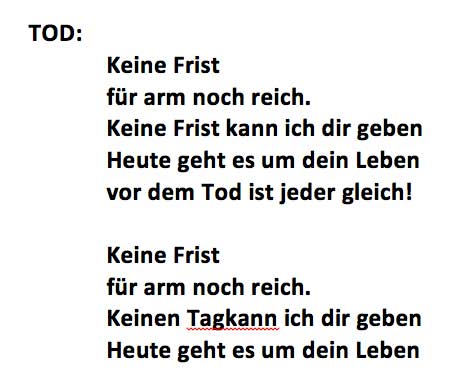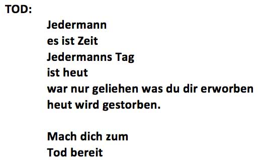 Die Nachricht aus Salzburg für den Jedermann im nächsten Jahr den Tod mit Ediih Clever zu besetzen, weckt die Worte des Textes dazu vor Augen und Ohren in lebendigen Vorstellungen auf übertragbare Deutung..
