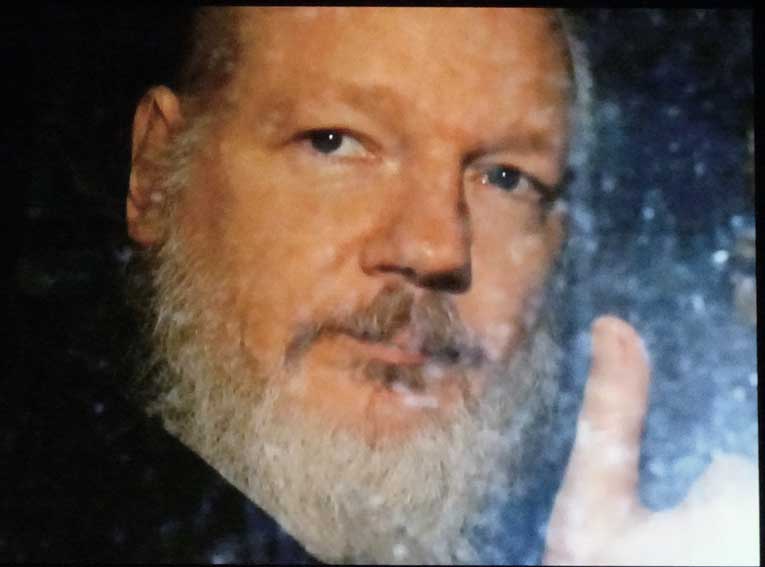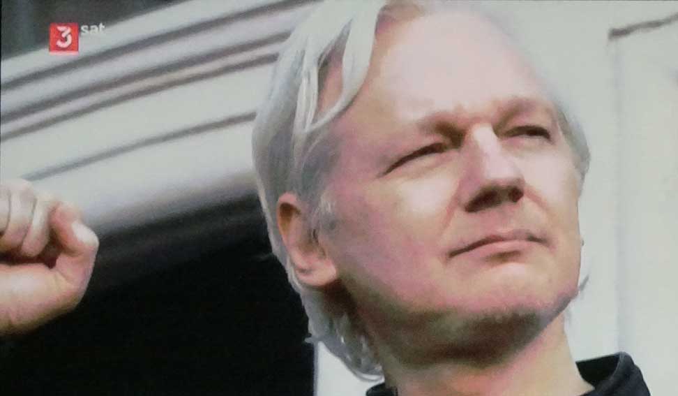 Assange vor der Abschiebung in die USA.In bedenklichem Zustand. Gejagt und nach fake News inhaftiert. Nun durch deutsche Patition gestützt. Es drohen 175 Jahre Gefängnis in den USA