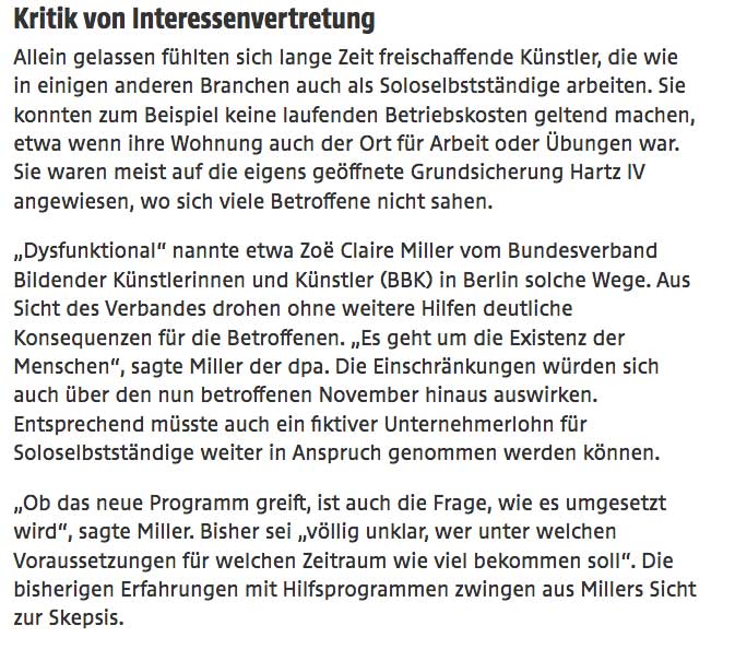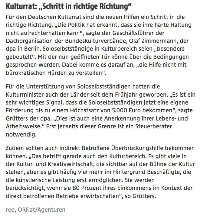 der Kulturbereich und die Kreativwirtschaft sind besonders gebeutelt ....