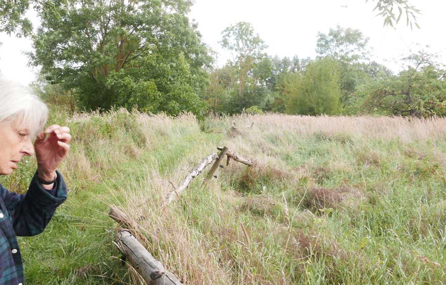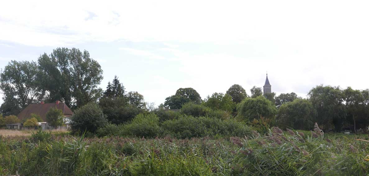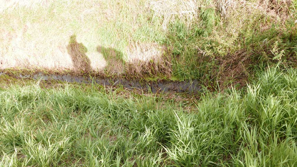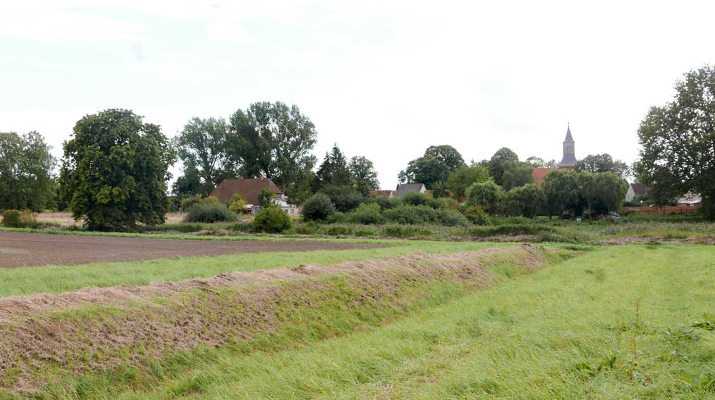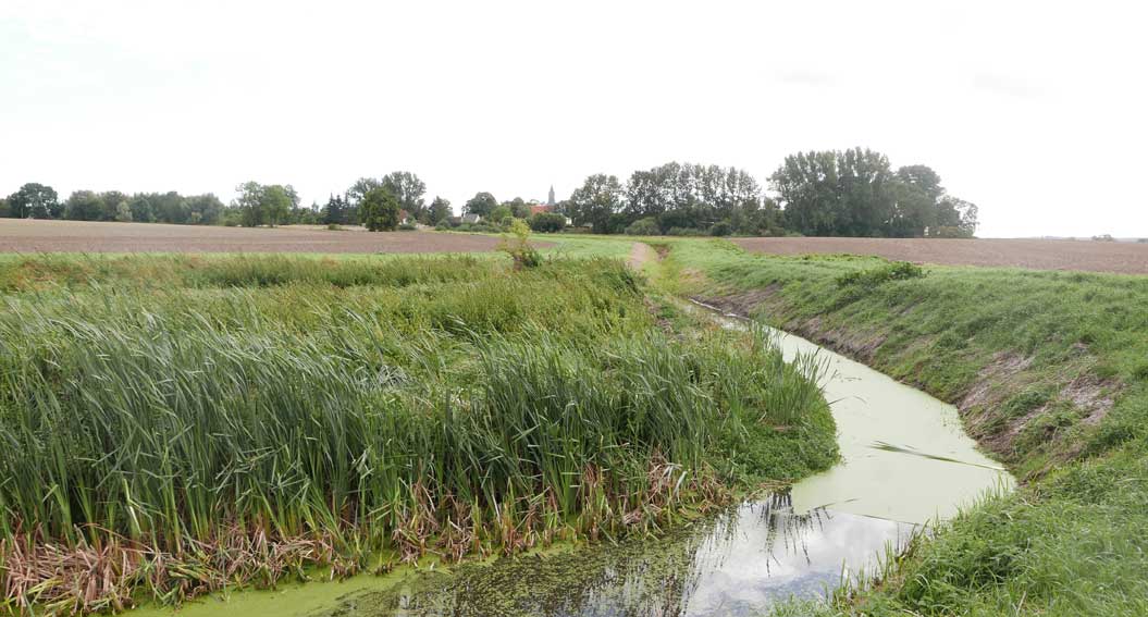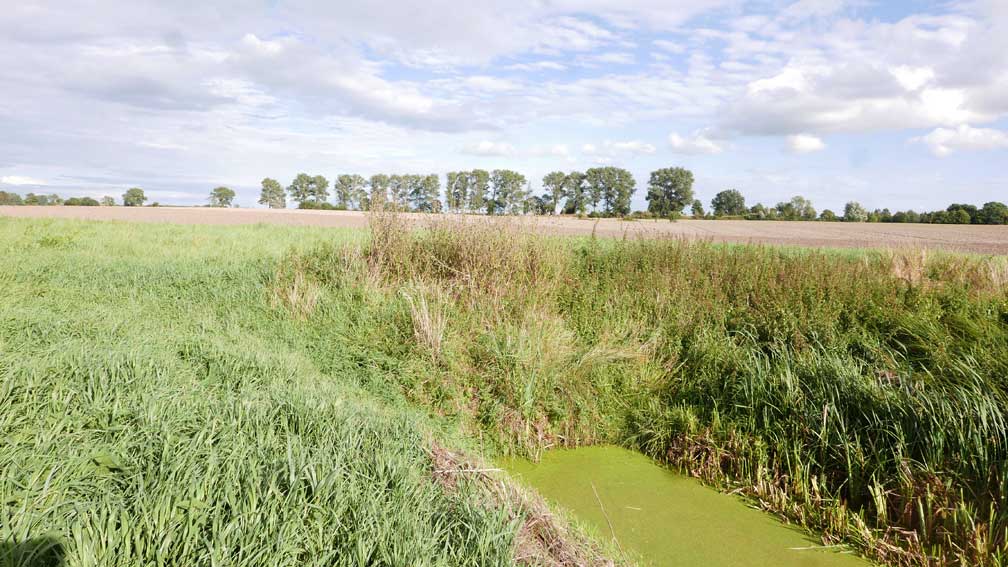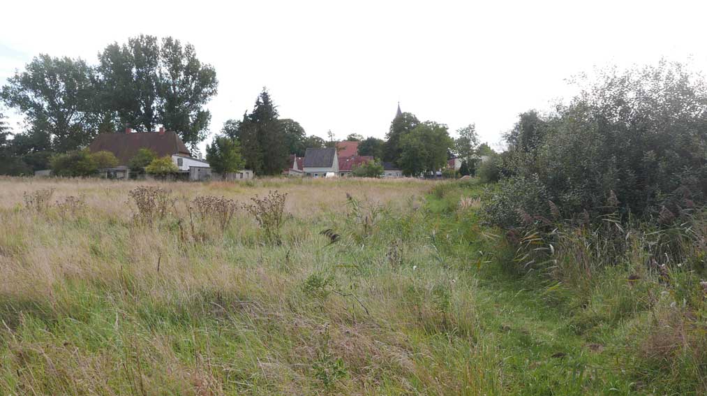 das Rohr, das nun offen sichtbar verstopft ist. ohne Bäume und Sträucher also, einfach aus Altersgründen versifft und erodiert, und wenig Wasser durchlässt, wie in Nossendorf am ehemaligen Kaphof auch. Nur dort ohnen Stau, wegen zu wenig Wasser.