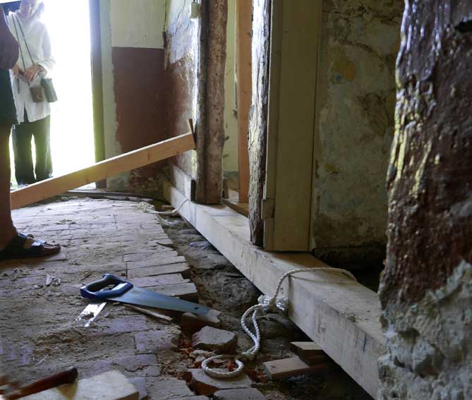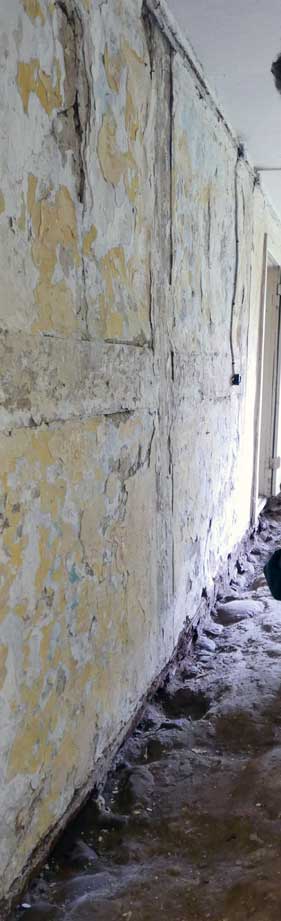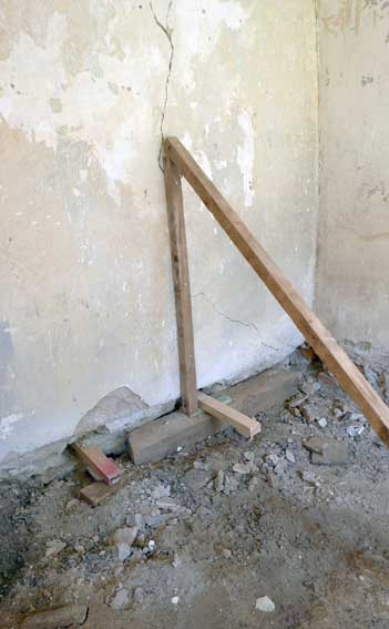 waren da drin, alles zu halten, stemmend, die Risse in den Wänden zeigen das Problem