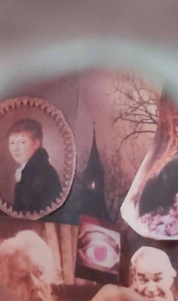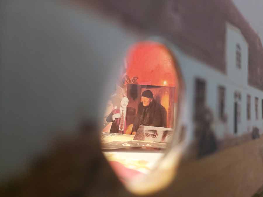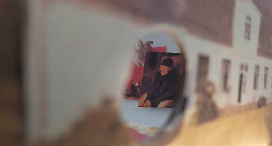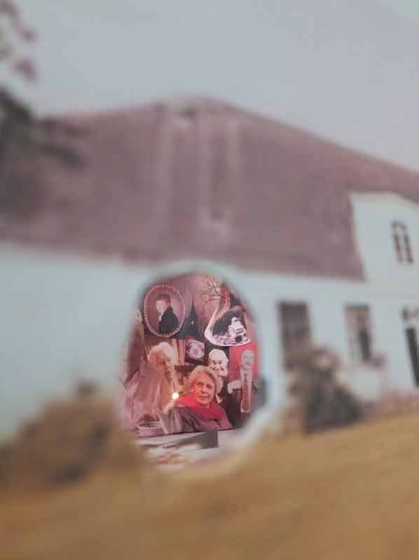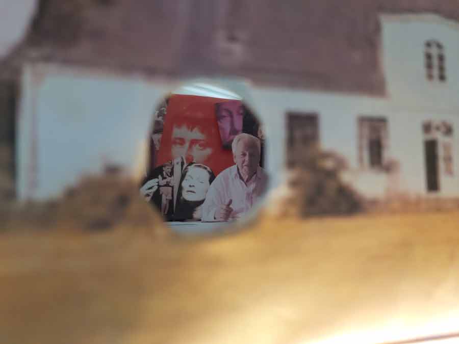 ...habe ich für Sie einen Guckkasten gebastelt, der Kasten ist das Haus in N. und wenn man rein schaut sieht man die vielen Figuren aus Ihren Filmen. Auch Ihre Frau ist im Guckkasten dabei, klar, sie ist das Zentrum Ihrer künstlerischen Kraft.