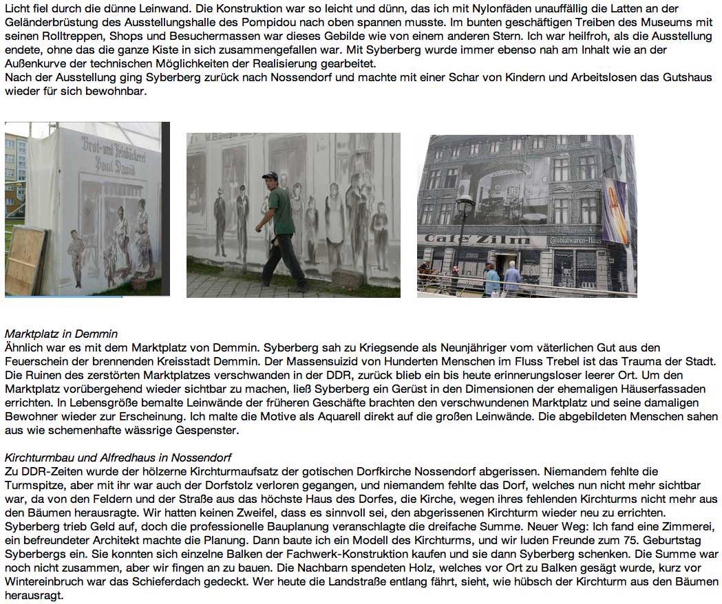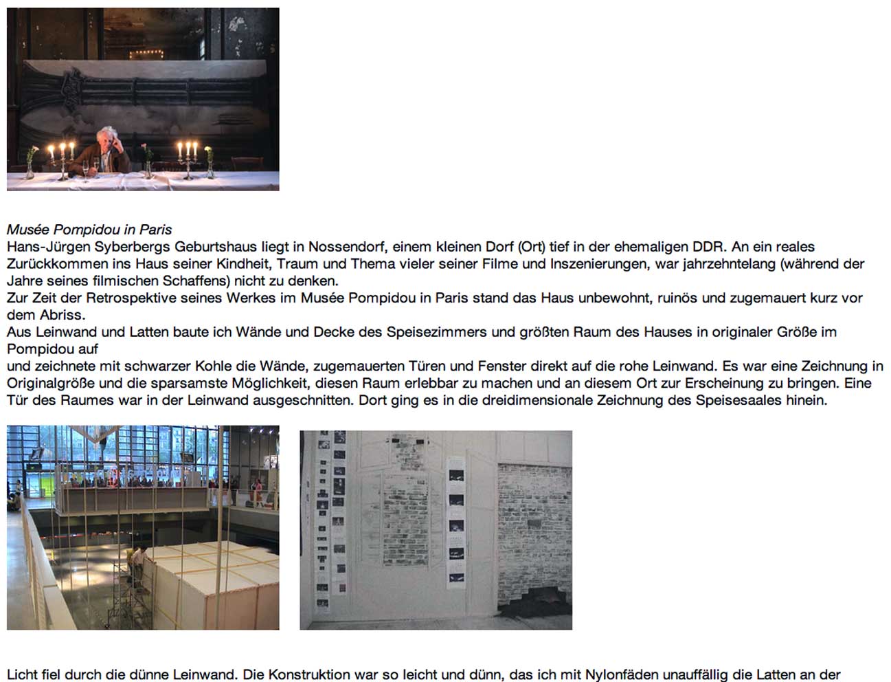 Vielleicht in Berlin demnächst das, was aus München gerettet wurde vor dem grossen Wasser, das Archiv ab1966 mit Kortner und BB bis zum H. dem Film aus D, und aus Berlin die Truhe der grossen Monologe mit dem Modell von Delphi, und was aus N. in der Halle entstand ab Paris 2003 mit Schloss Berlin als Ruine und ein anderes Demmin, als Angebot - aus sich selbst.