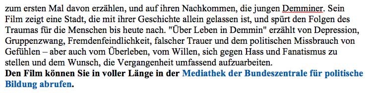 geschaut " Über Demmin" Ein phantastischer Film! Und Frau Hirsch so