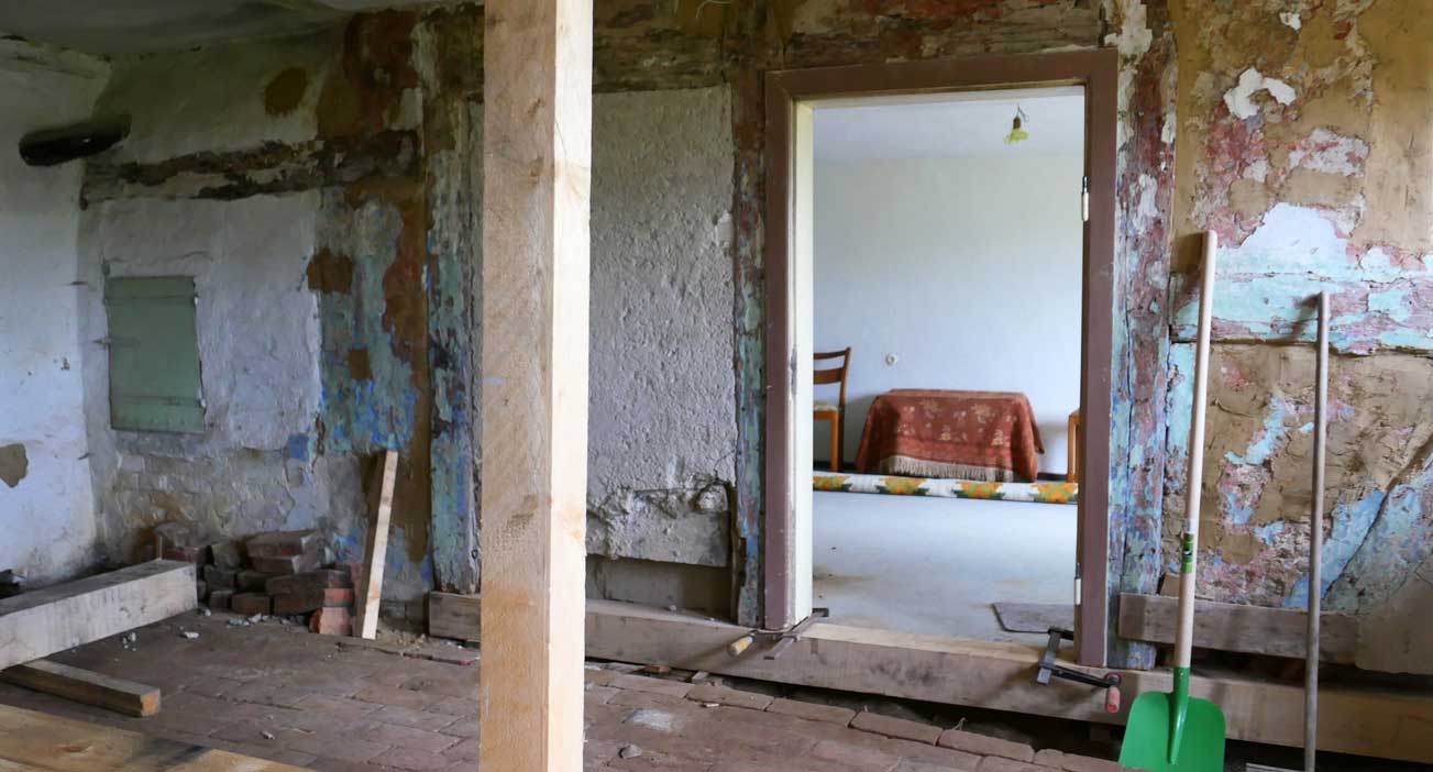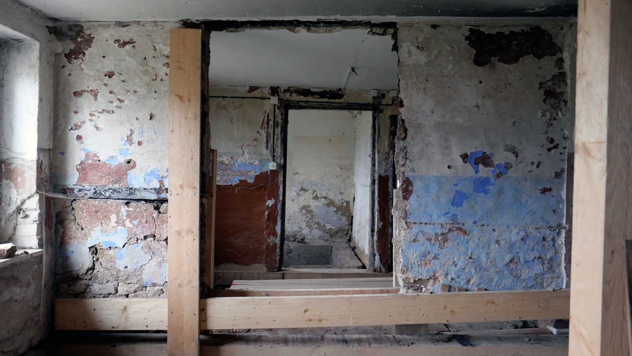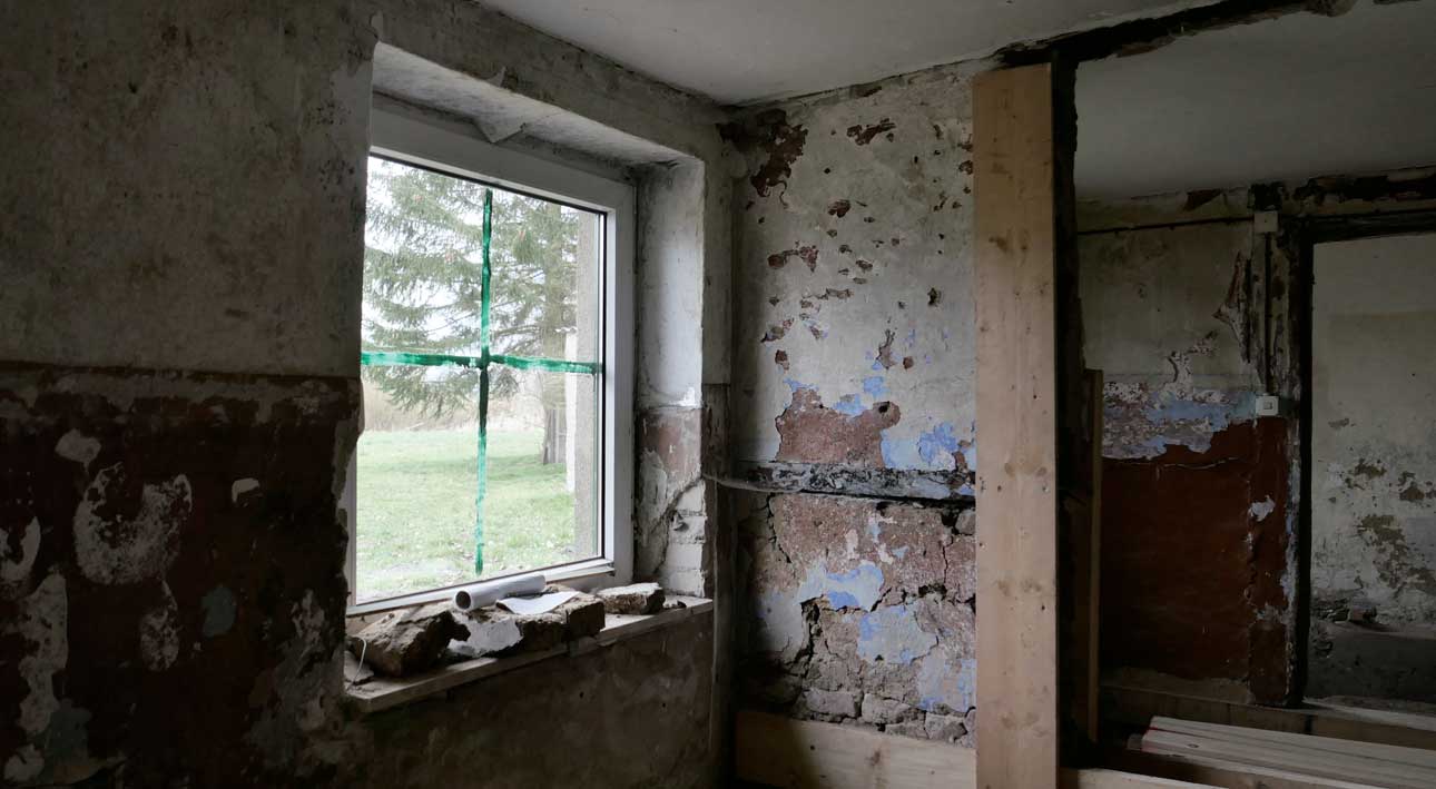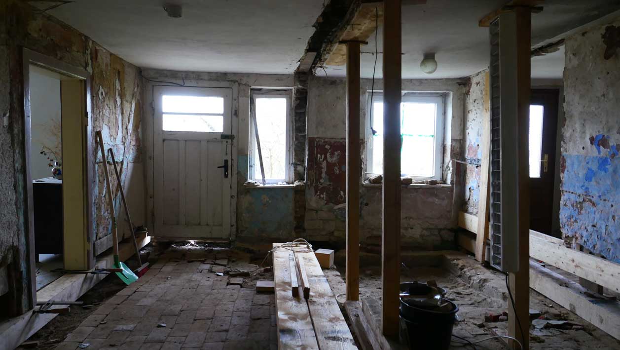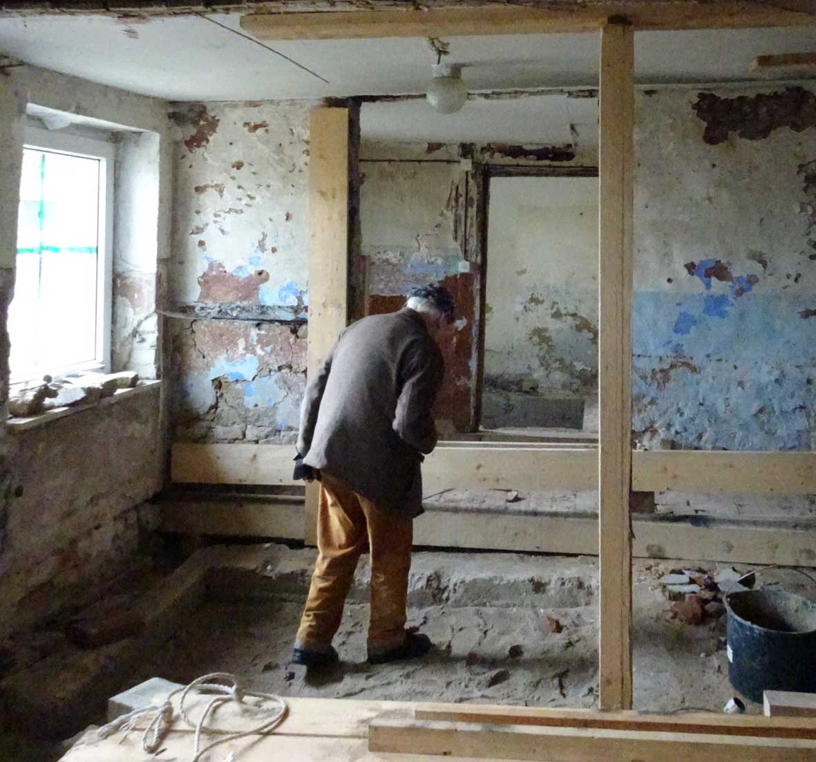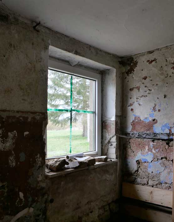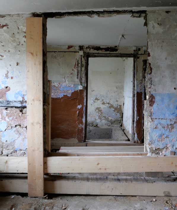 die Wände des Raums wartend wie die Fundemante schon des neuen Halts.