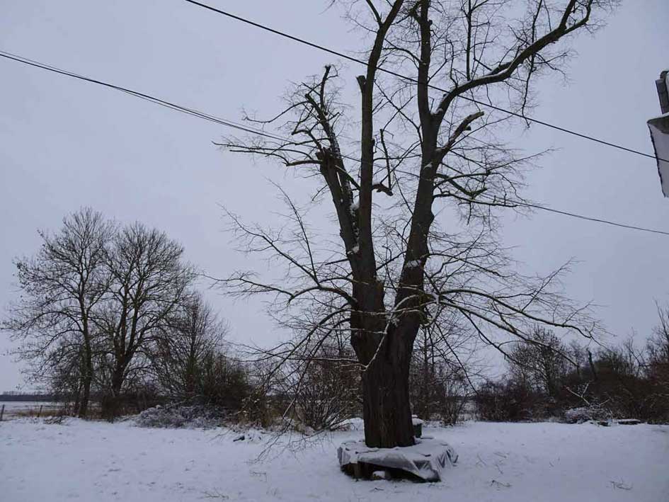 Wo sonst junge Linden stehen und Brücken führen ins Feld
