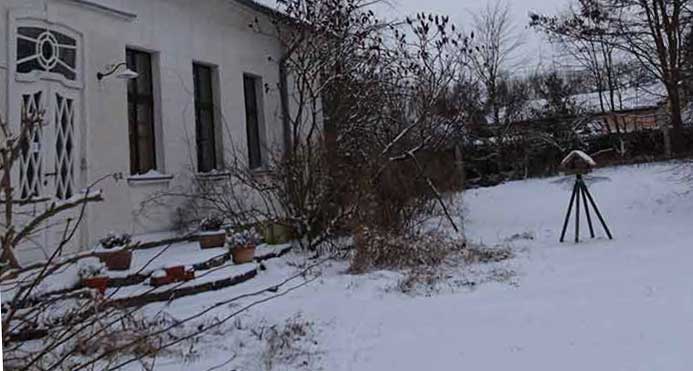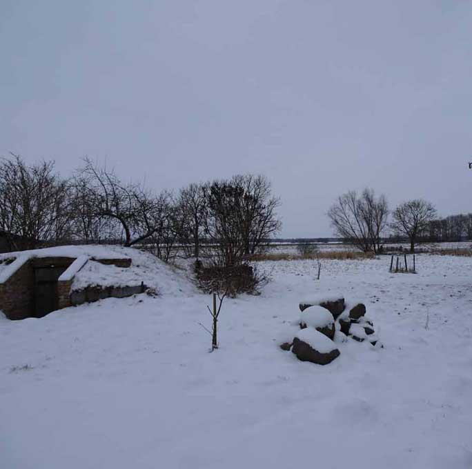 ob der Teich schon trägt, die Kinder auf der Trebel dann, führer mit den Peikschleedn und Schlittschuhen oder Schlitten hinter Wägen, die's nicht mehr gibt. Dass das Heu danach wärmt in den Scheunen der Höhlen.