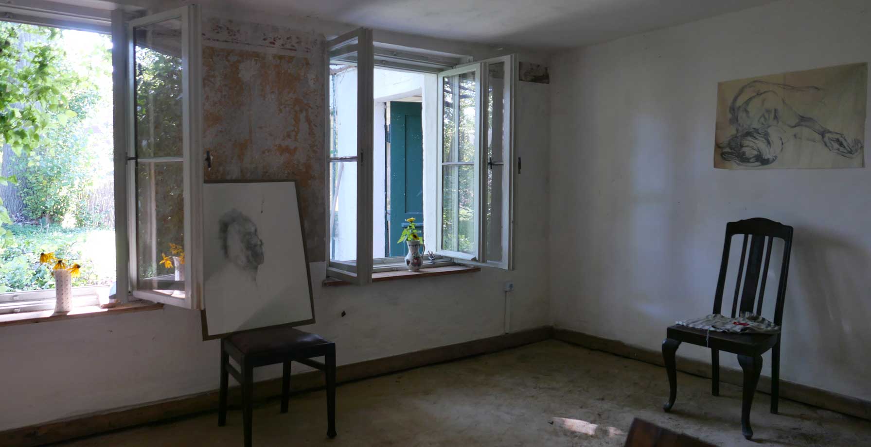 Was vor dem Haus den Blick behinderte und das Licht nicht einliess, ist weg. Den alten Flügel-Fenstern zuliebe und alles ist wie befreit. Der Blick zuerst nach aussen.