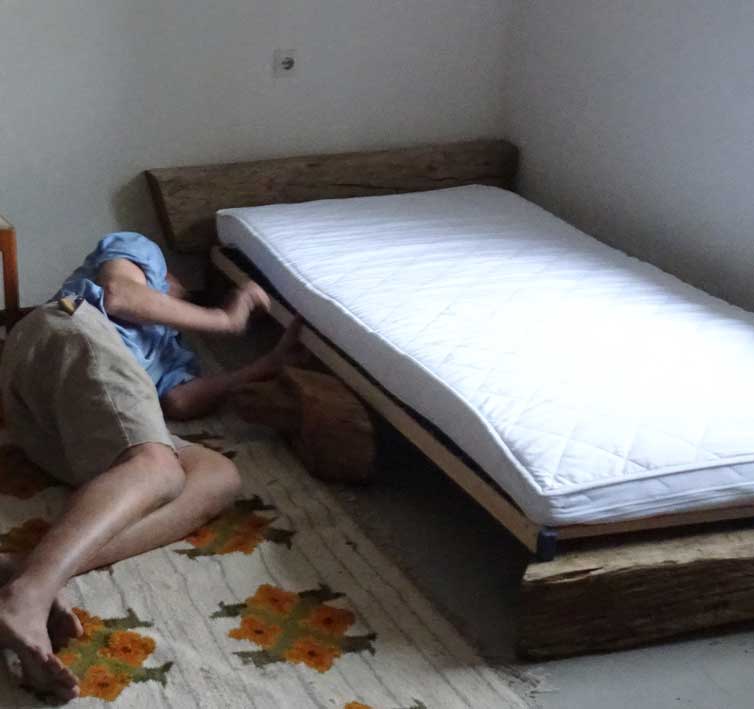gebaut einfach aus Lattenrost im leichten Rahmen auf dem was da ist