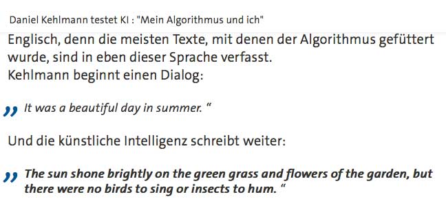 K. machte ein Experiment wie seine eingegebenen Sätze die Maschine fortsetzt, aus dem was sie enthhält.