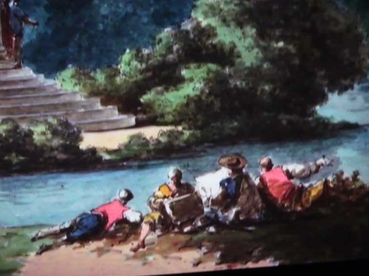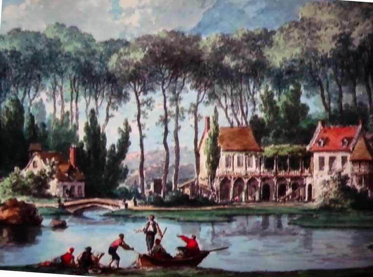 manchmal sieht es aus als machten sie diese Anlagen mitr Häus und Garten zum einfachen Leben extra für Bilder davon als Veduten mit idyllischen Menschengruppen davor, Sie selbst waren anders, höfisch gekleidet, oder sie haben sich extra ländlich kostümiert, wollten sich so aufgezeichnet sehen.