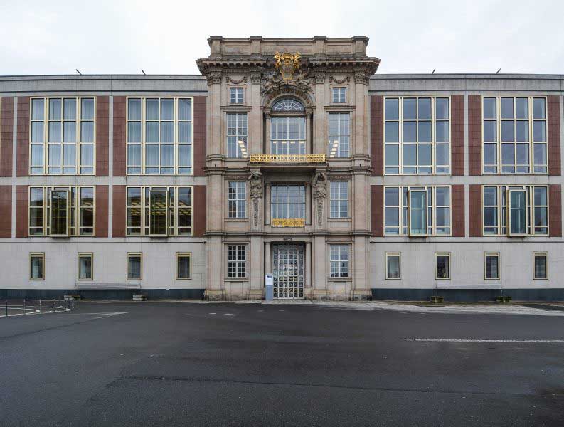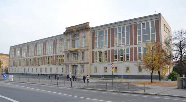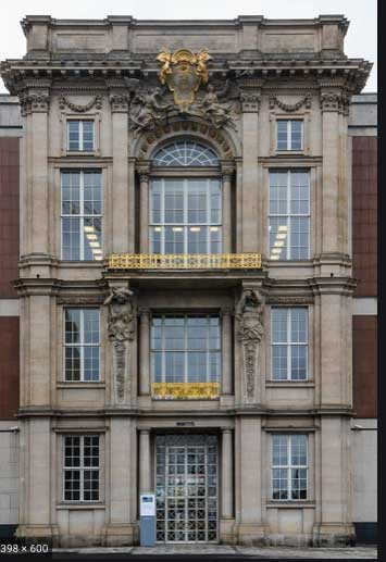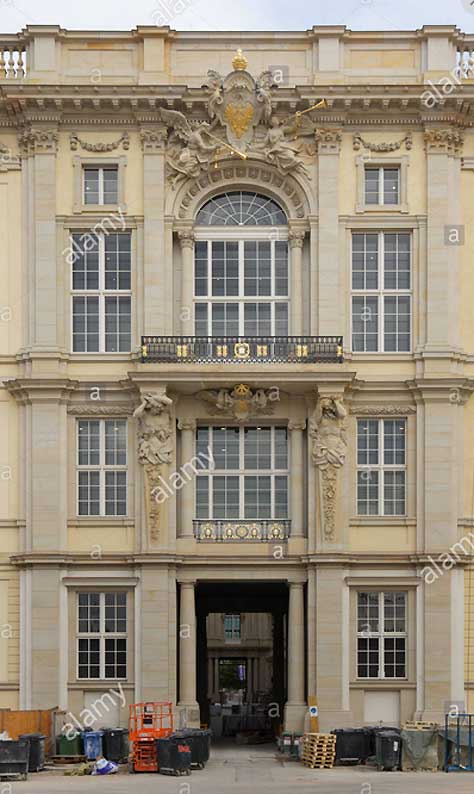 in immer neuen Versuchen das alte Portal des vernichteten Schlosses in Berlin als Präsentaion alter Normen hinüber zu retten noch heute