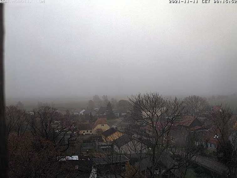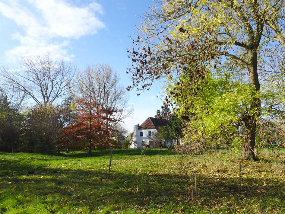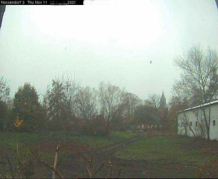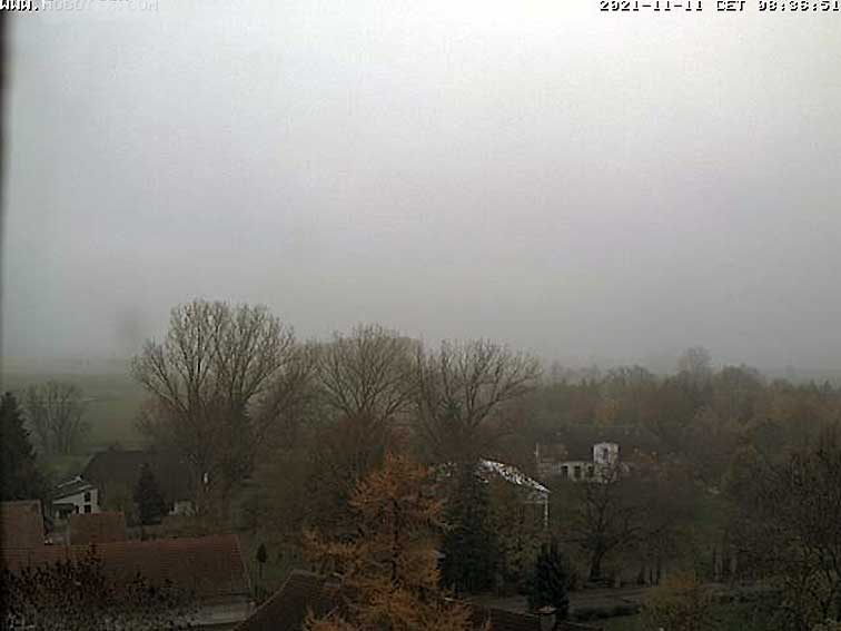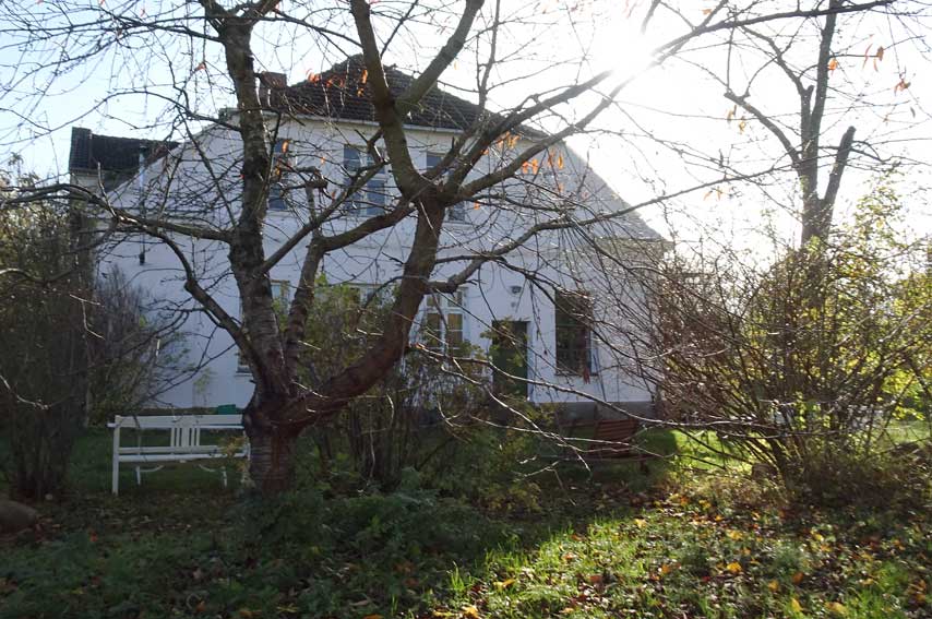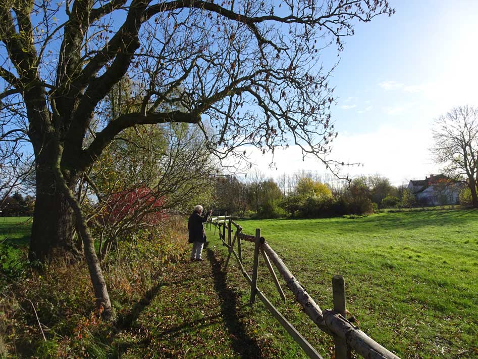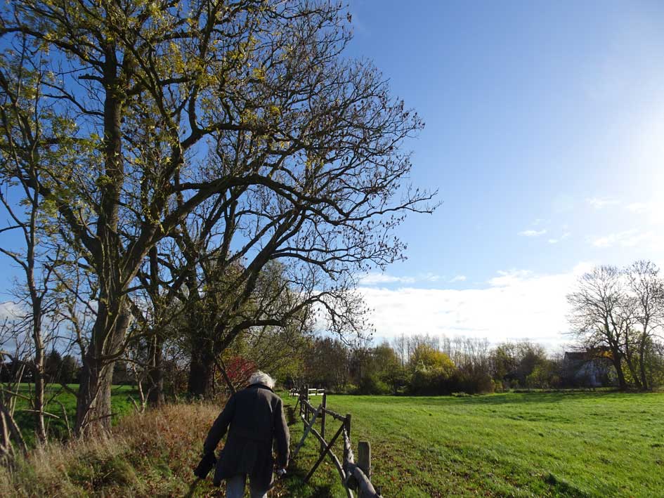 Uns aber ist der Anblick lieb. Die Häuser gegenüber und die Koppeln mit dem so gebildeten Teich zusammen.