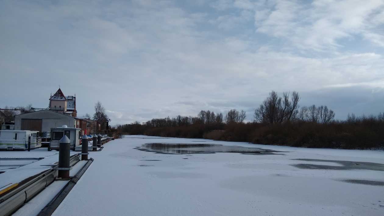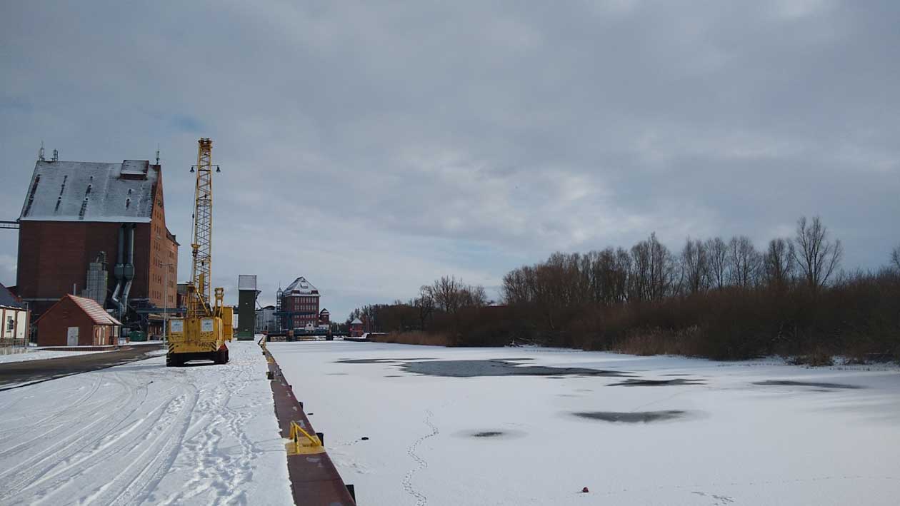 Ein Gang vom alten Hafen nach Norden an der Peene zur Marina dem Hafen für