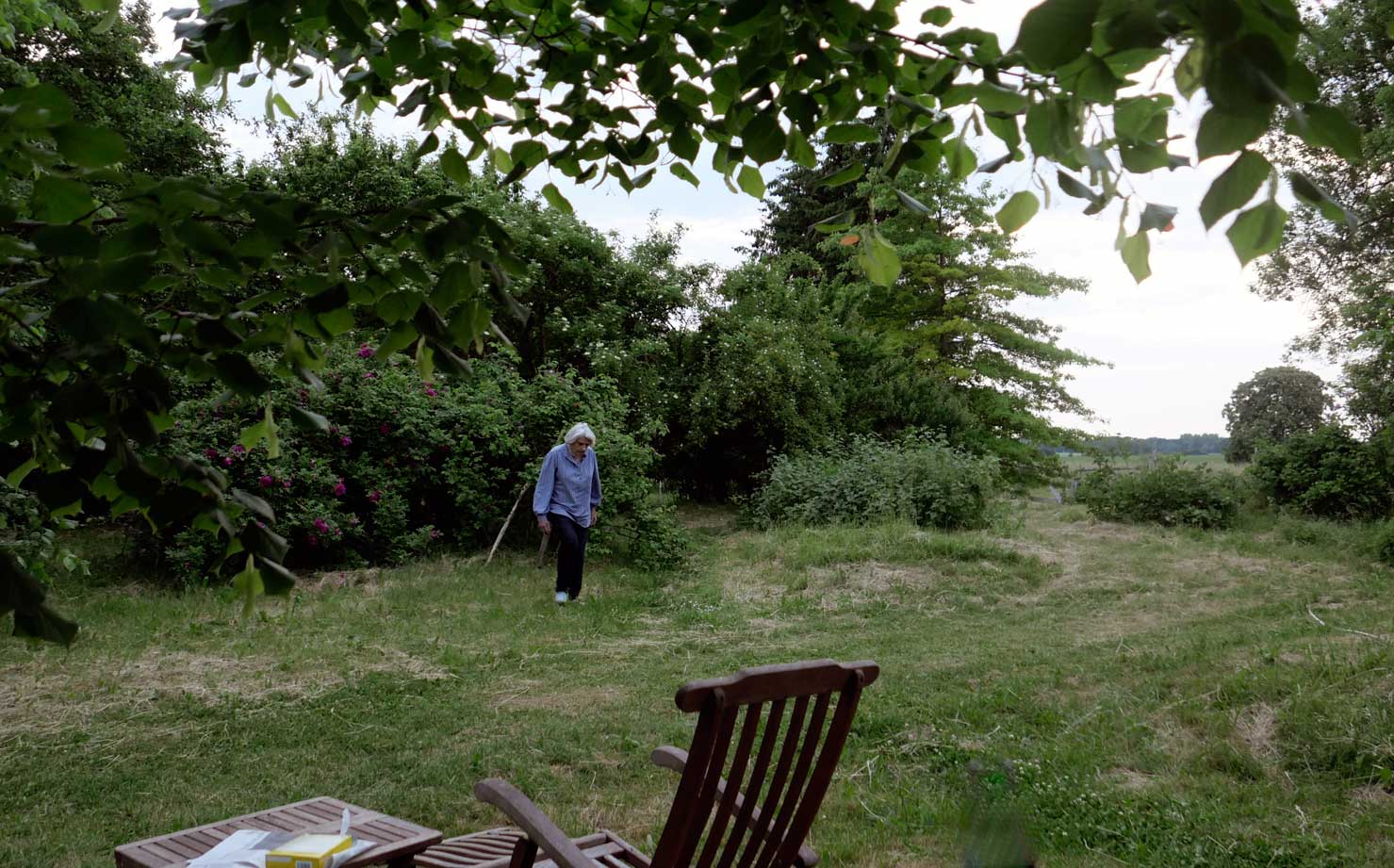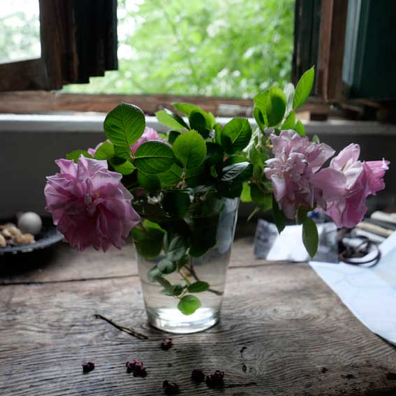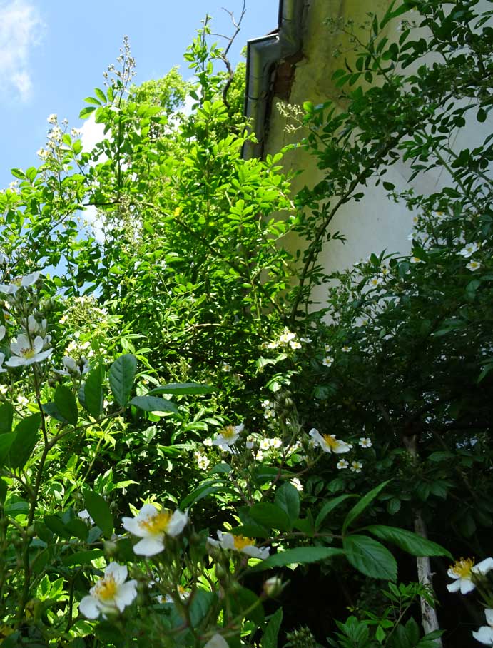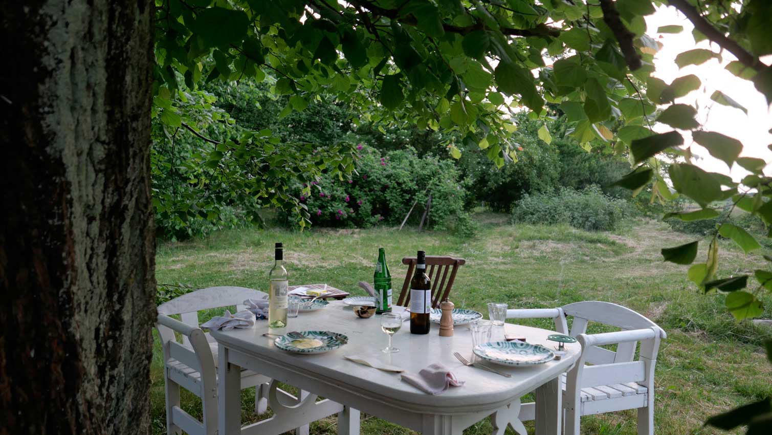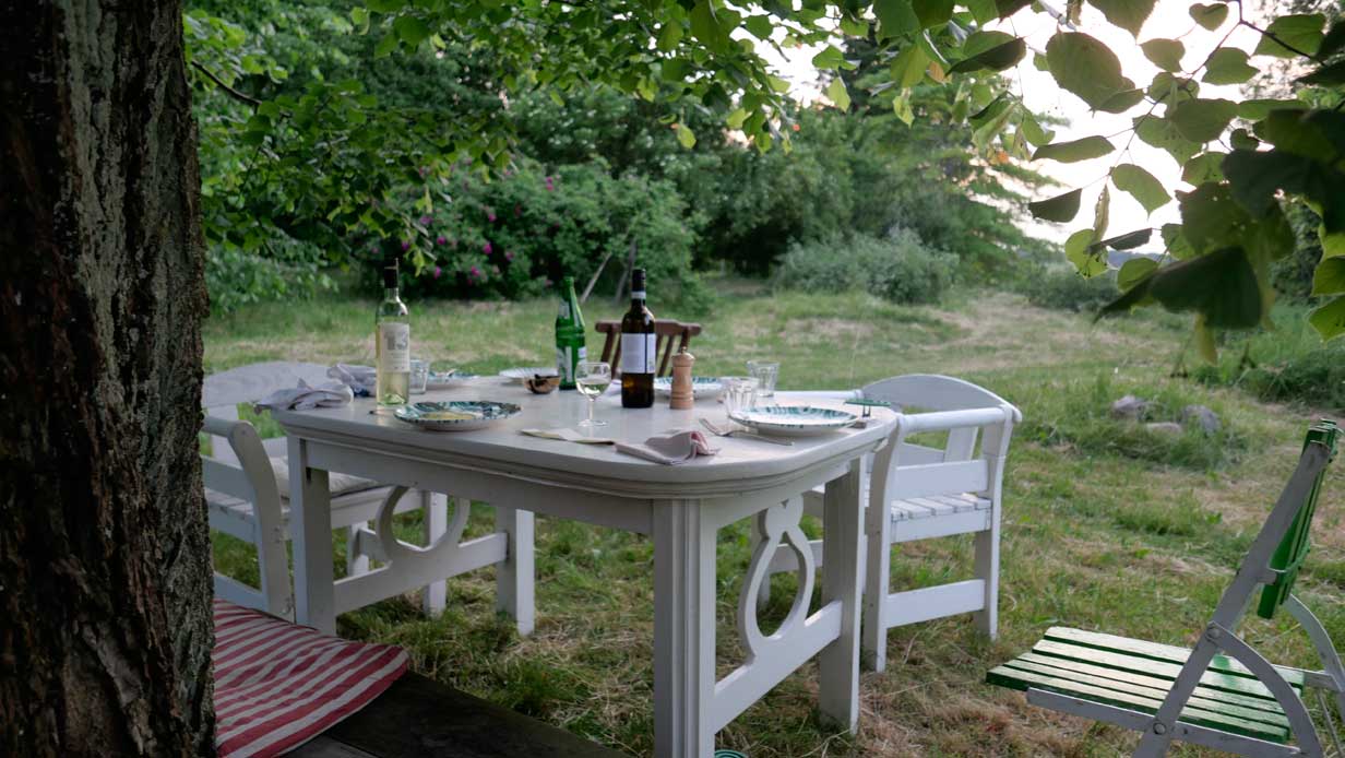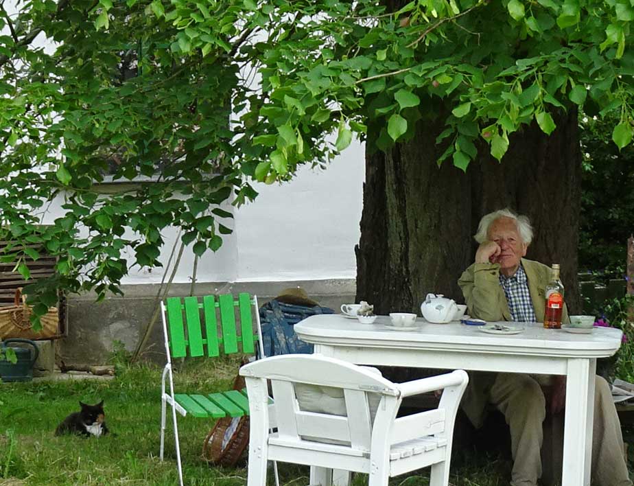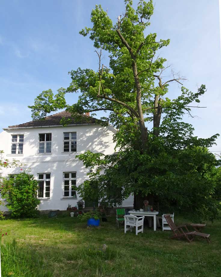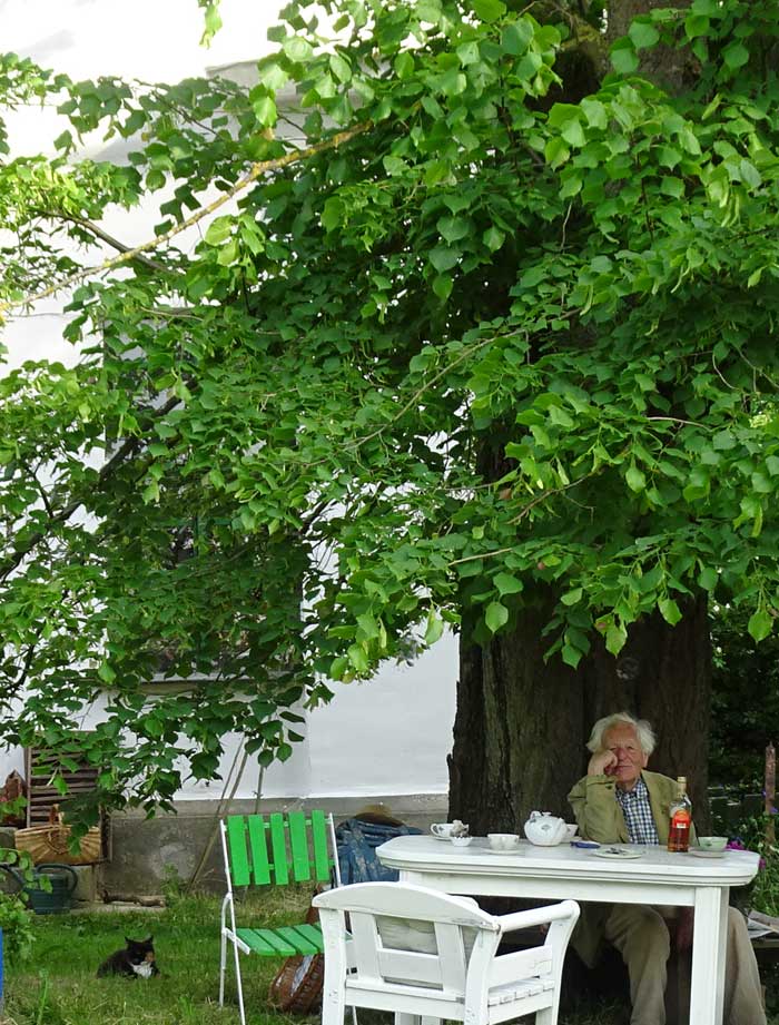 wieder am alten Tisch aus München nach Fotoalben aus N. gebaut. restariert. unter der Linde vor dem Haus/Küchenseite
