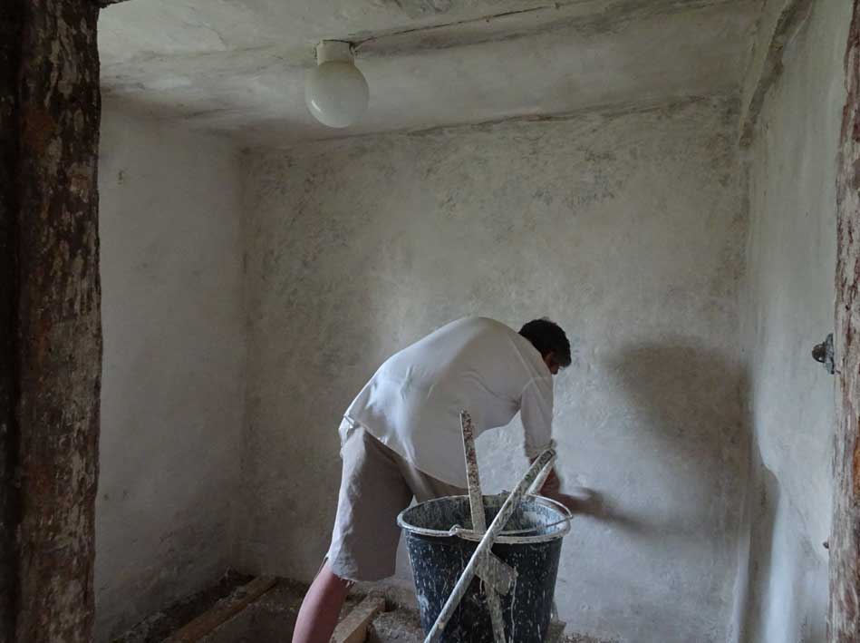 nimmt Gestalt anWände mit Lehm gekallt und Decke aus Holz, da atmet gut, wer da hin sieht, bald im Deatil.