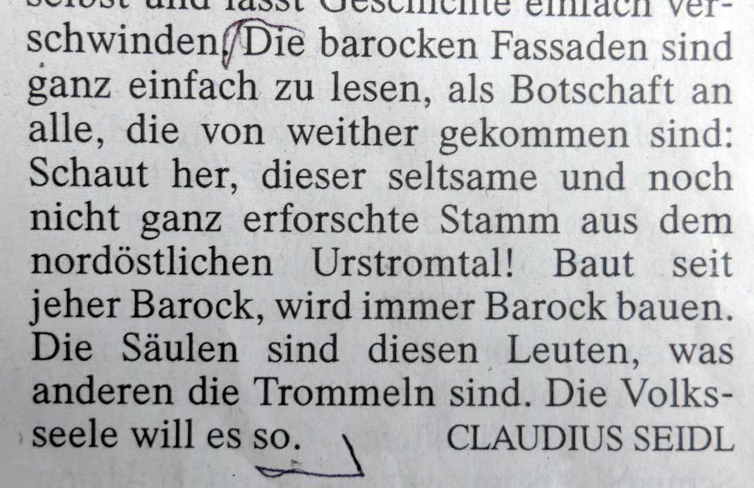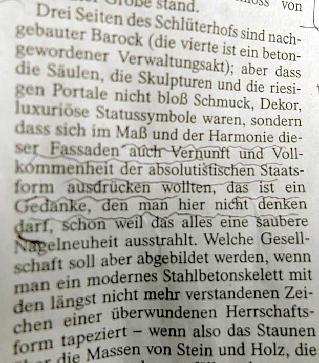 So ist dies neue Haus im Zentrum, abseits von Welt-Hybris und feigen Frechheiten, durchaus ein Zeichen von Tragik auch. Sie beantworteten die Leere des Platzes von aussen mit einer Leere von innen in sich. Sie verstanden die Botschaft der Erinnerungen nicht mehr den wiedergegebenen Ort der Mitte zu behaupten.