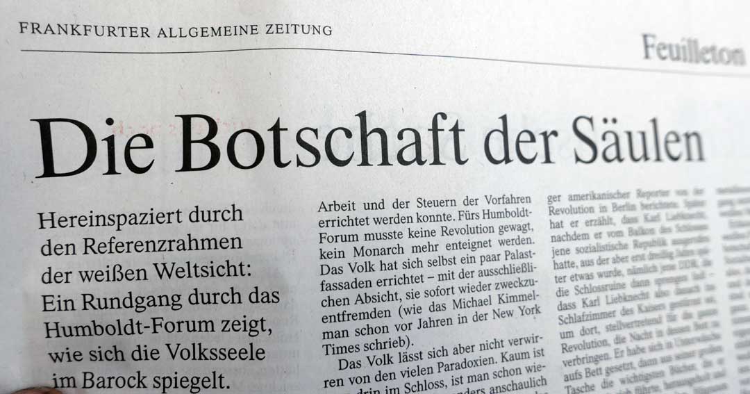 Endlich ist es gesagt. Hindurchgehend, was hier gemeint war und was verlorenging. nicht durch die Kretins der Geschichte und deren zynische Auftraggeber, sondern, durch unsere und hiesigen Lakaien in der Anmassung des Namens von Humboldt und Wissenshaften und Demokratie. Sie wollten sich andienen und haben die Welt verraten . Nun haben sie den Hohn schon im eigenen Land und den Fluch der Völker auf uns geladen, ganz ohne Krieg und dem aktuellen Abgang das Sigel aufgedrückt von Scheitern mitten im Lande.