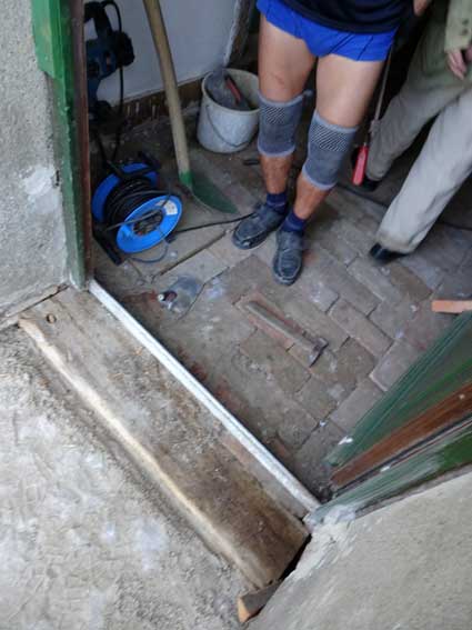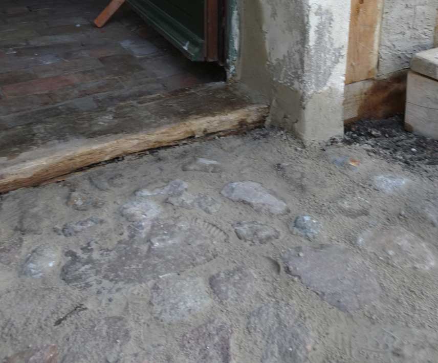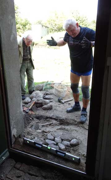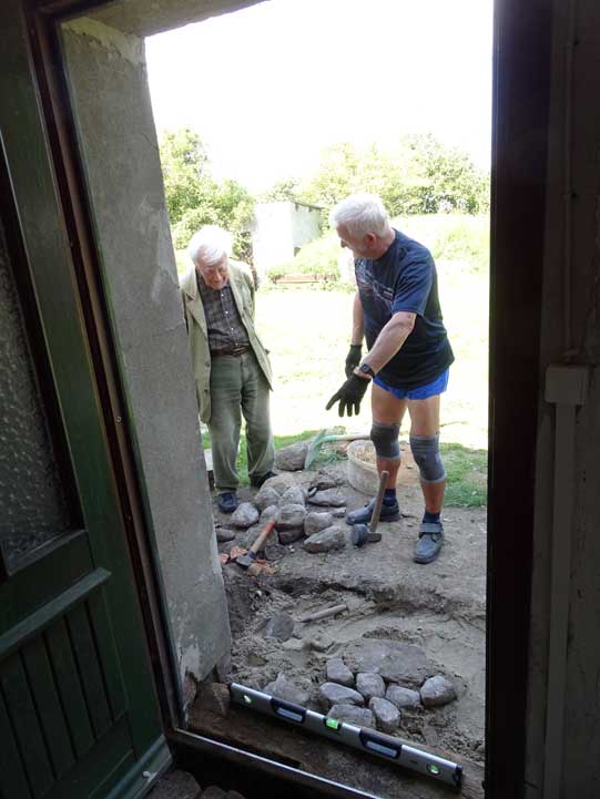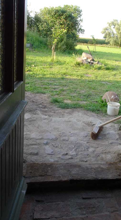 ebnen, pflastern auch nach aussen mit vorhandenen Stein von innen