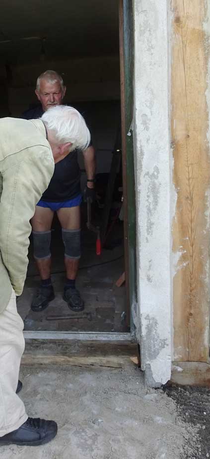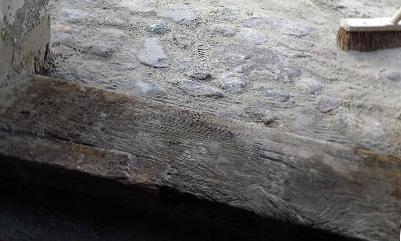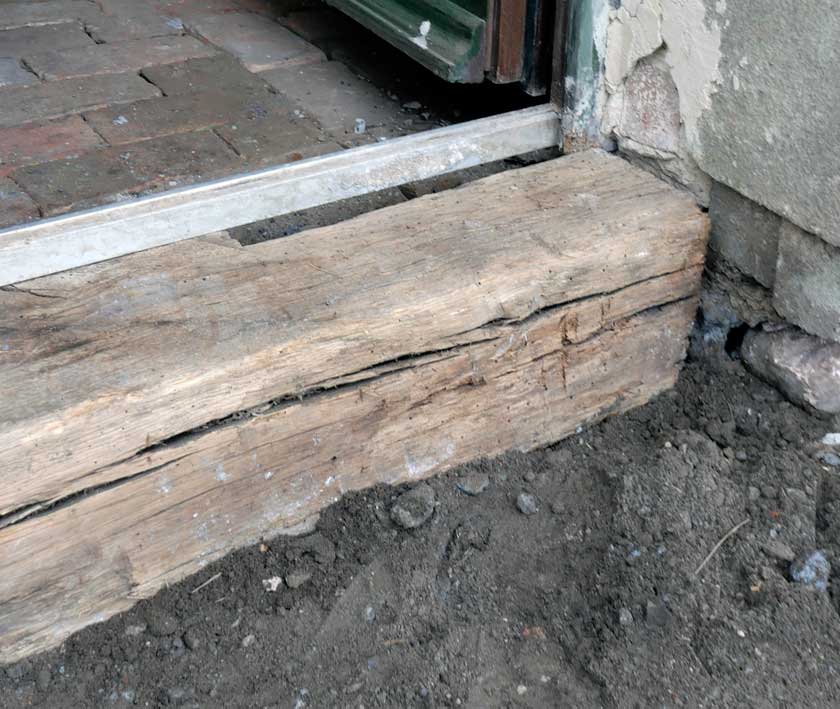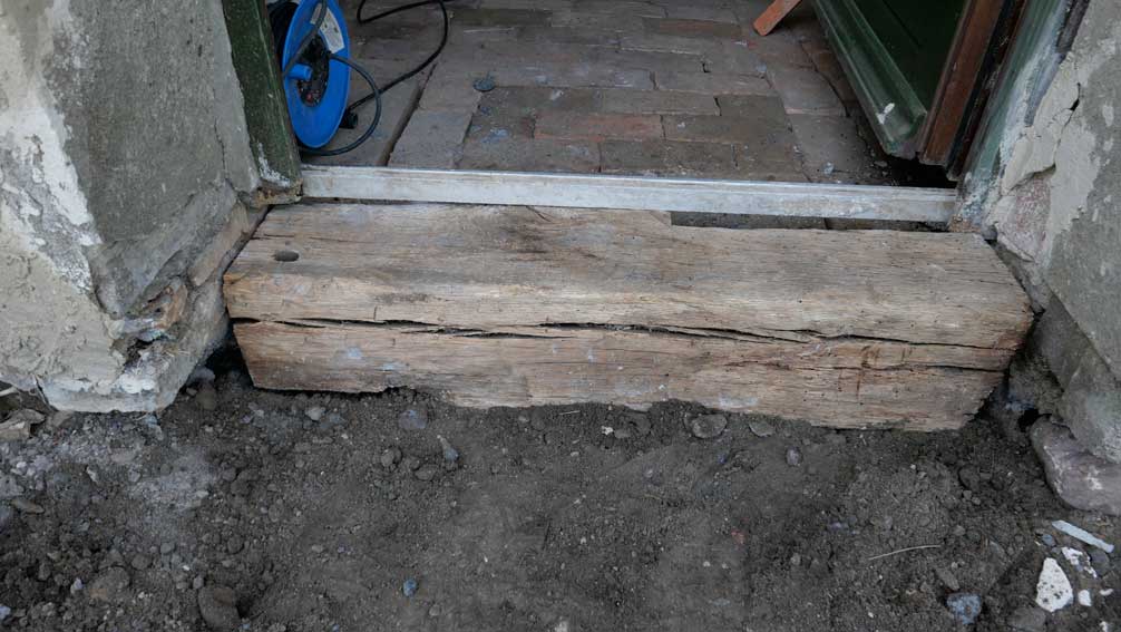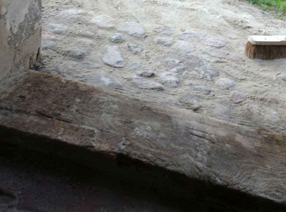 Alt ist das Holz der Kirche aus Eiche. Fest. Aber den Türrahmen wer hält den ohne die Metallschine bisher im Beton..