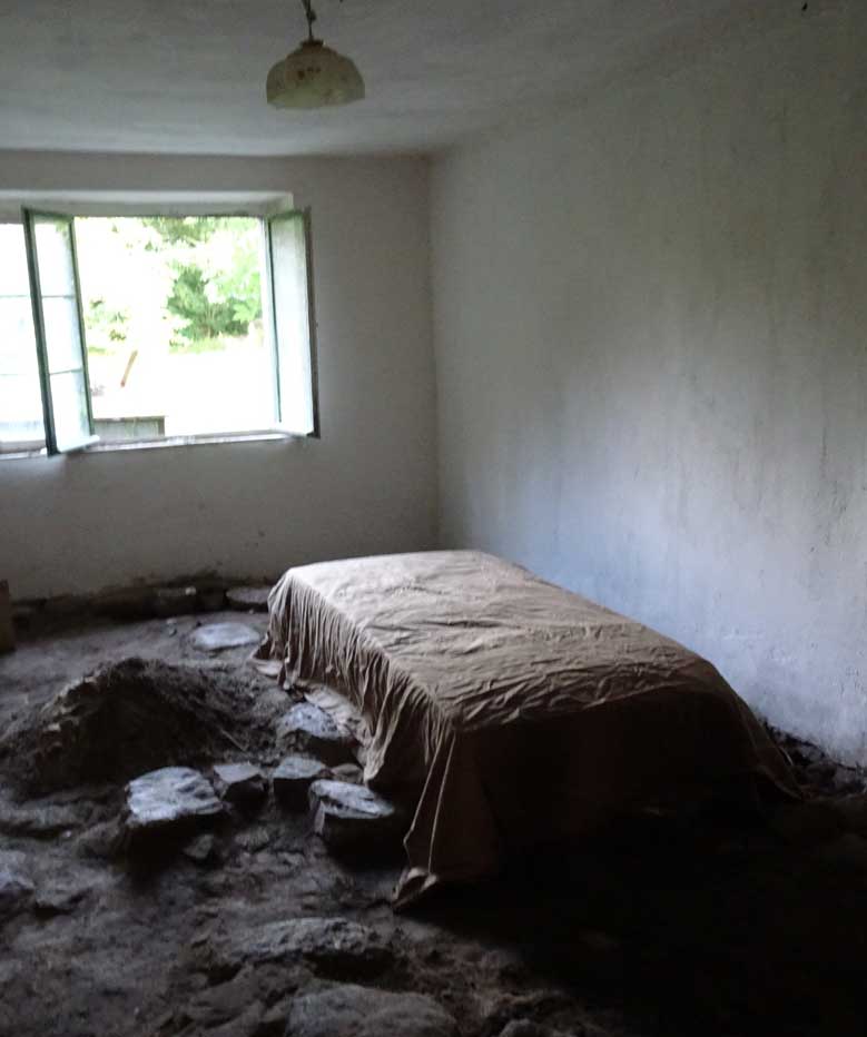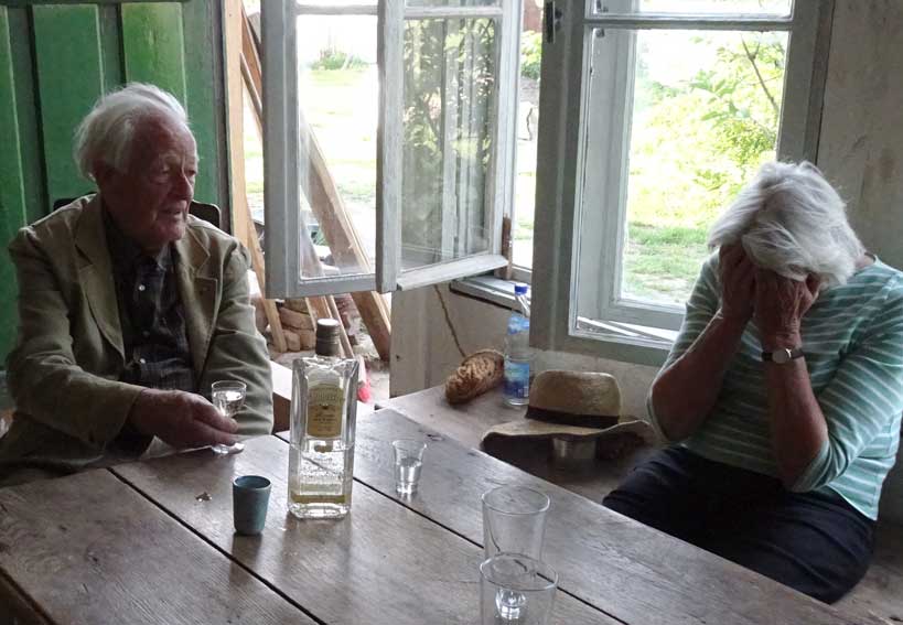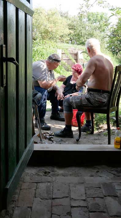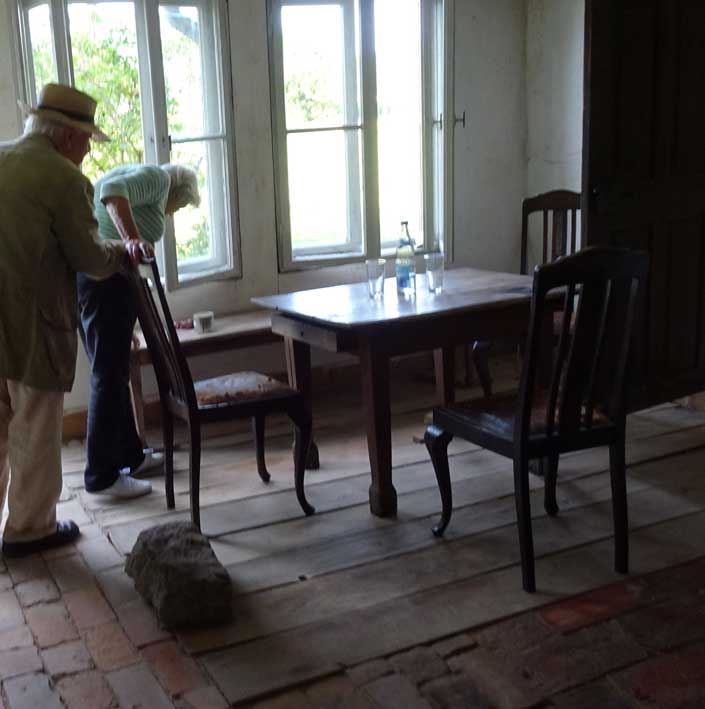 Innenraum, die Küche dann. Tisch und Bank gewachst