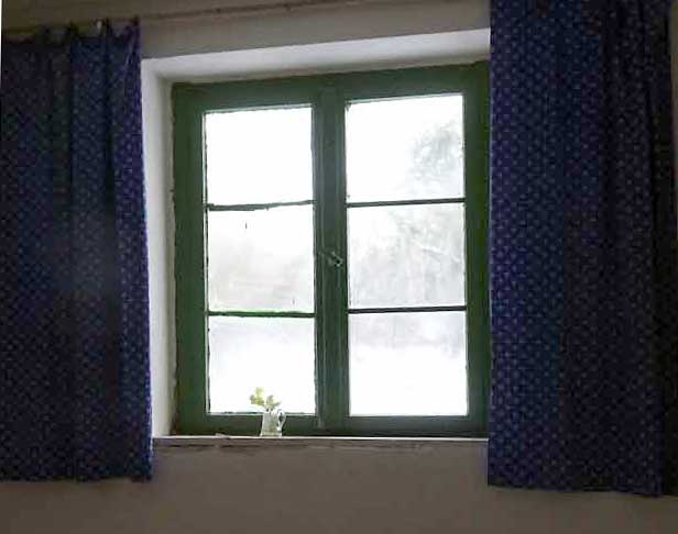 Und im Gutshaus das Blau des Himmels selbst mit dem einzigen Fenster das überlebte