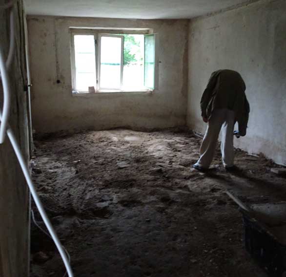 Daneben der Raum mit nun geglättetem Lehm-Boden