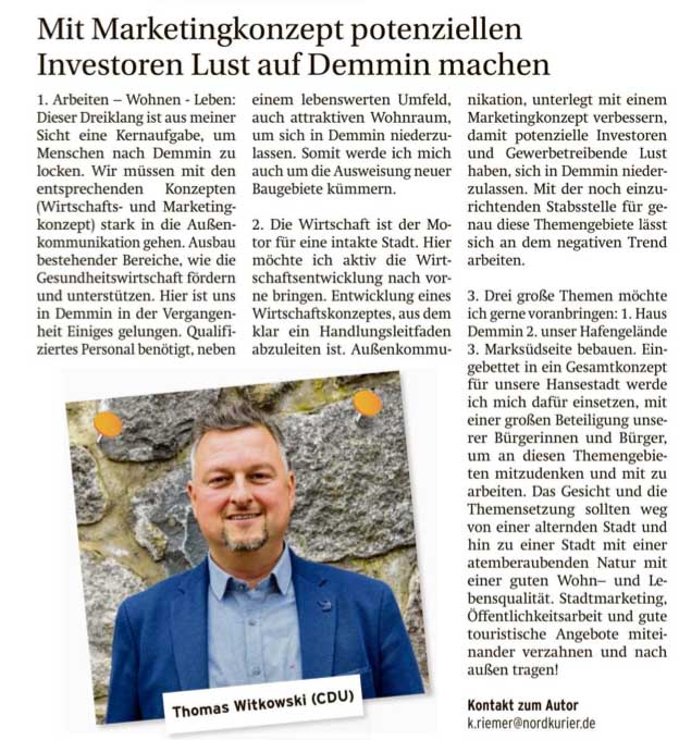Der neue Bewerber für das Bürgermeister Amt im Nordkurier, der Demminer Zeitung. Nun doch?