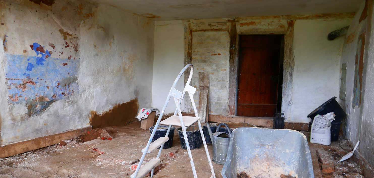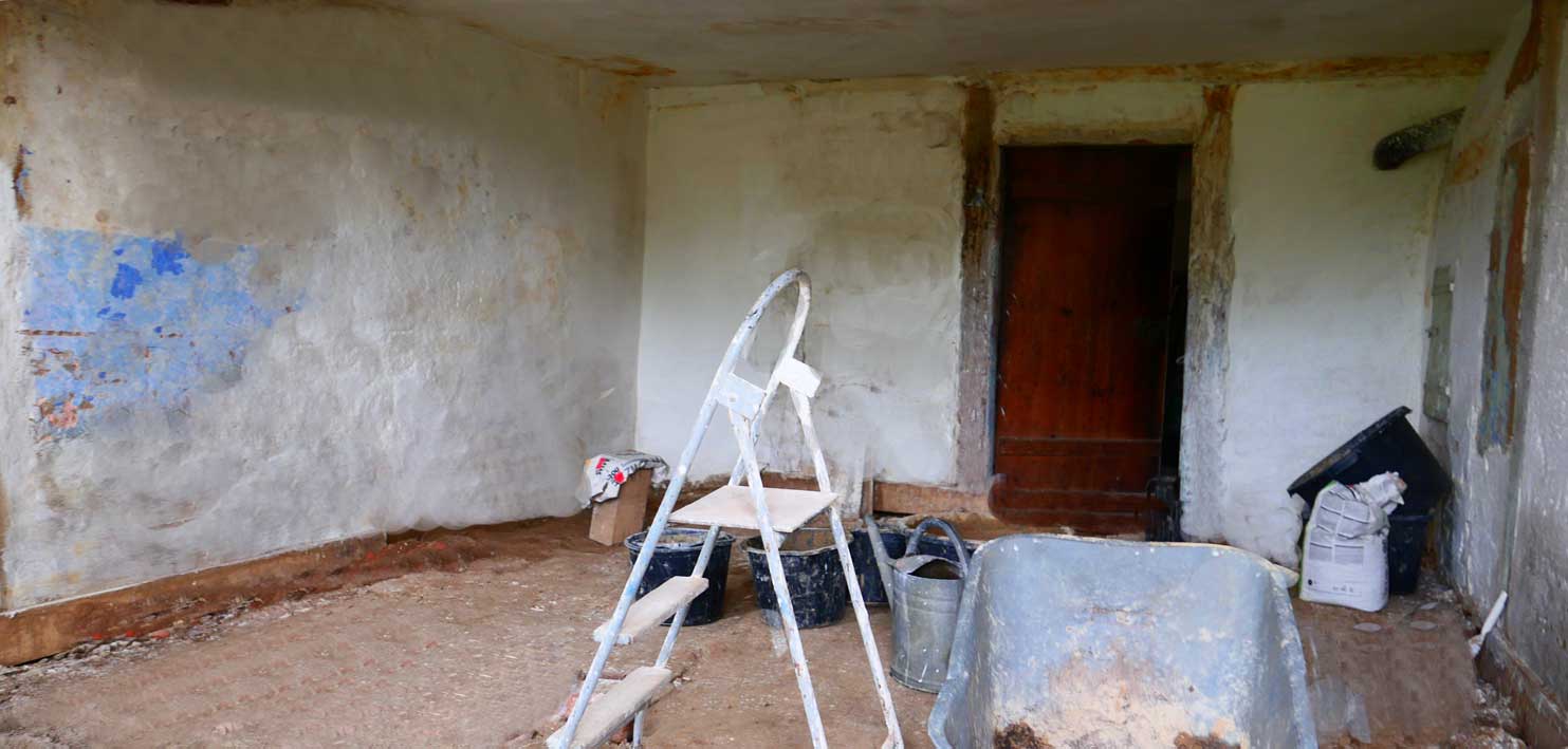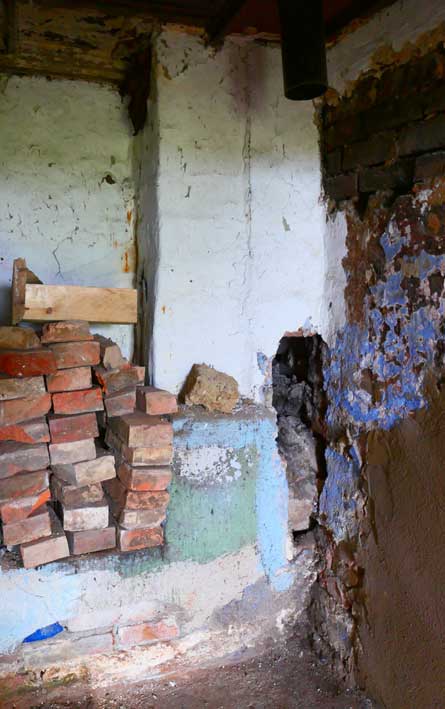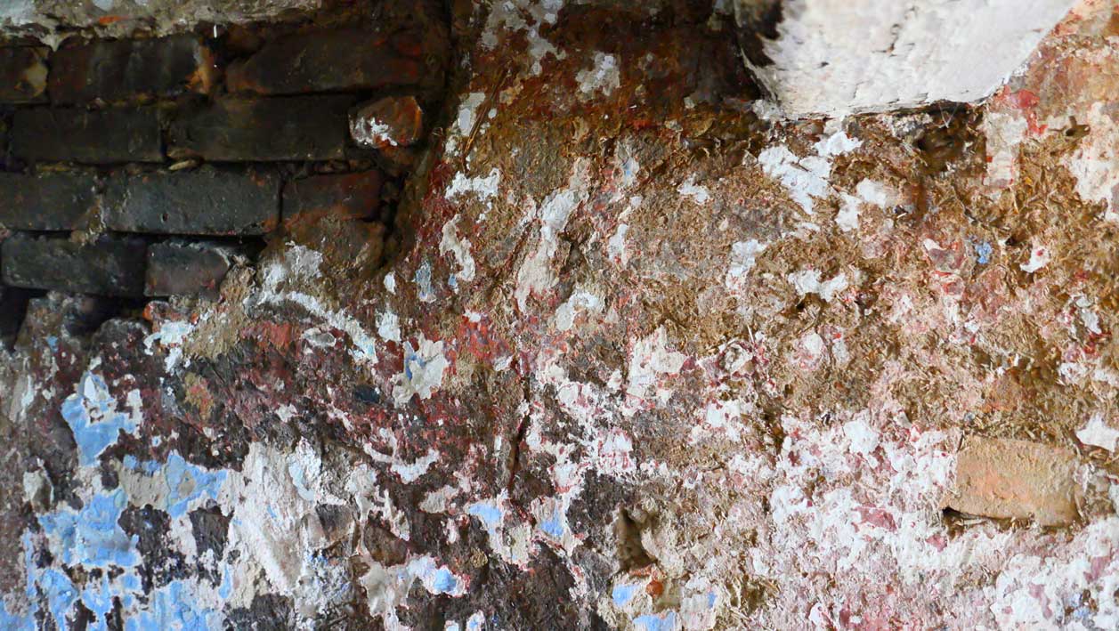 die Wände der Räume mit den Schichten ihrer Enstehungen durchschreiten mit den Augen.